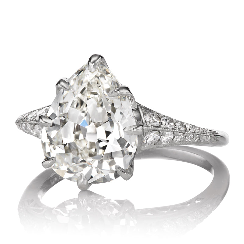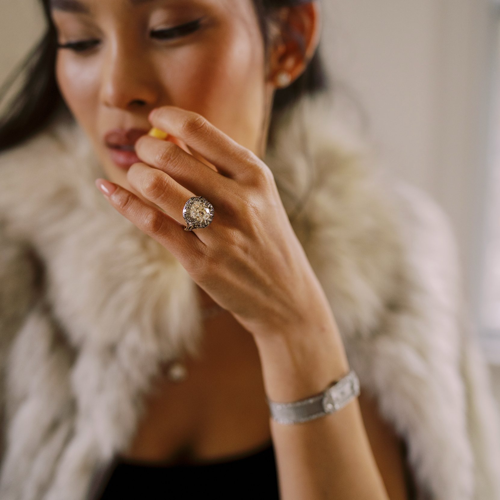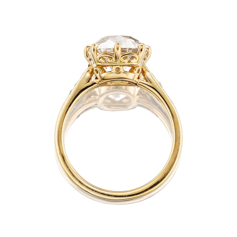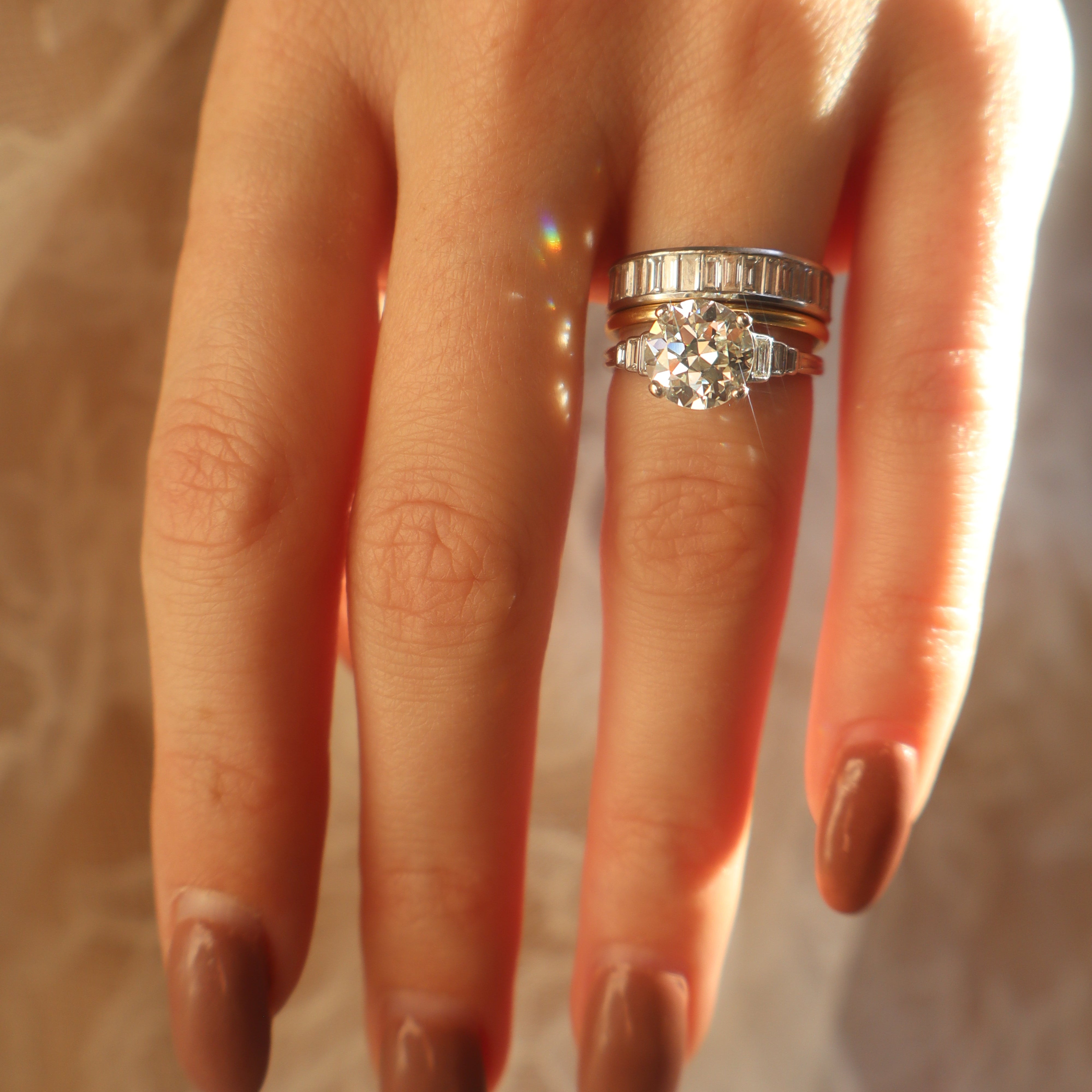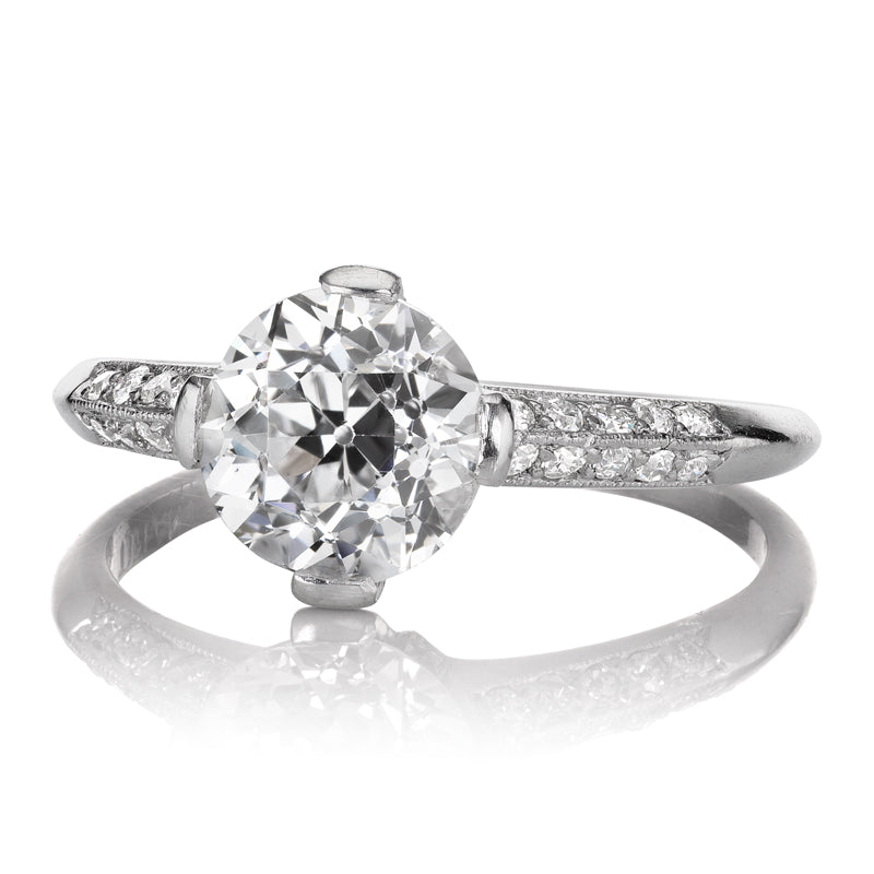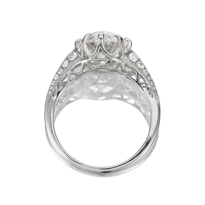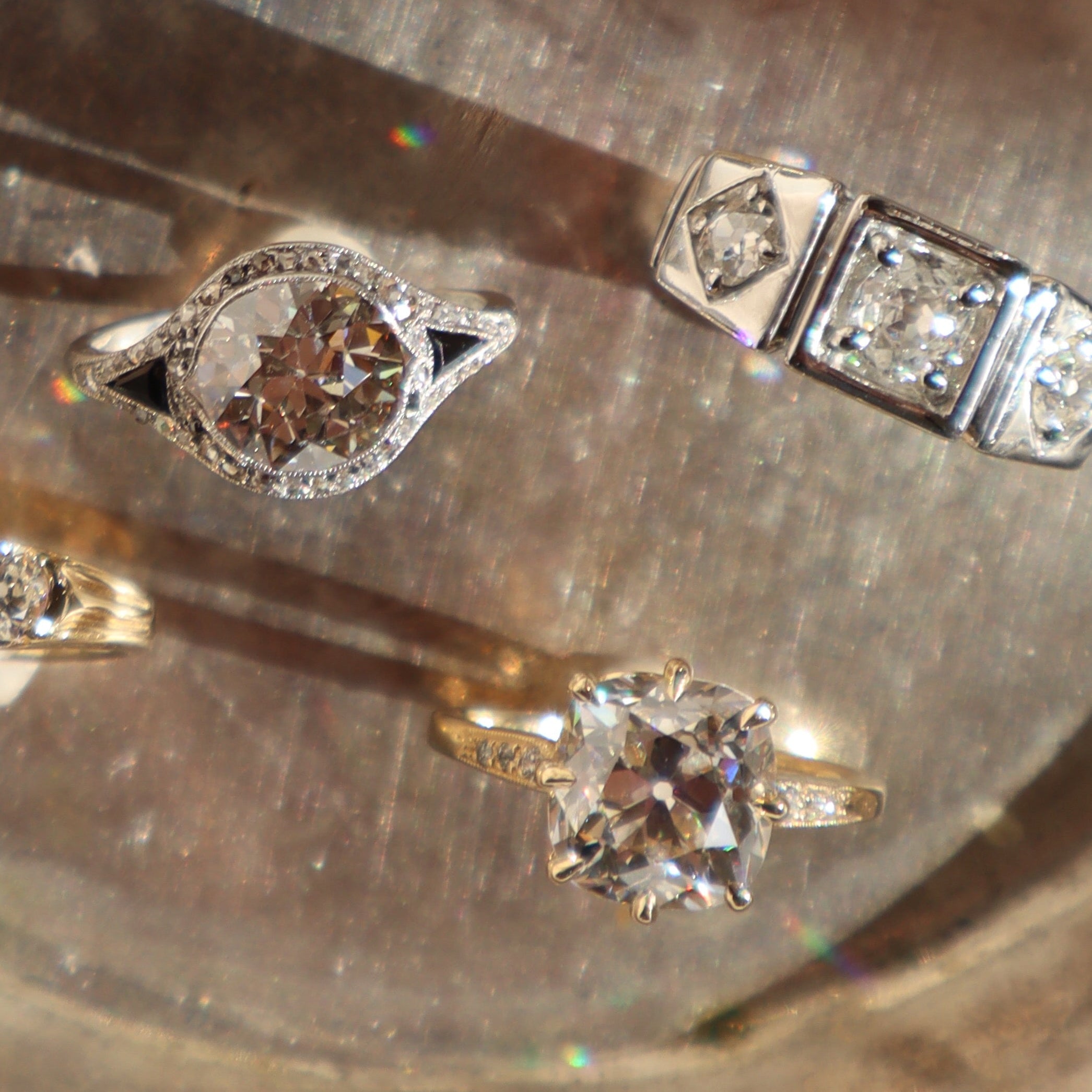 The faceting of antique diamonds is what makes them so beautiful. More broad and open, this creates the signature look of an antique stone. Diamonds were cut in this style up until the 1940s- when they shifted to the modern style of tightly knit, more splintery faceting. The broad facets create a dynamic play of light that makes these stones feel more alive.