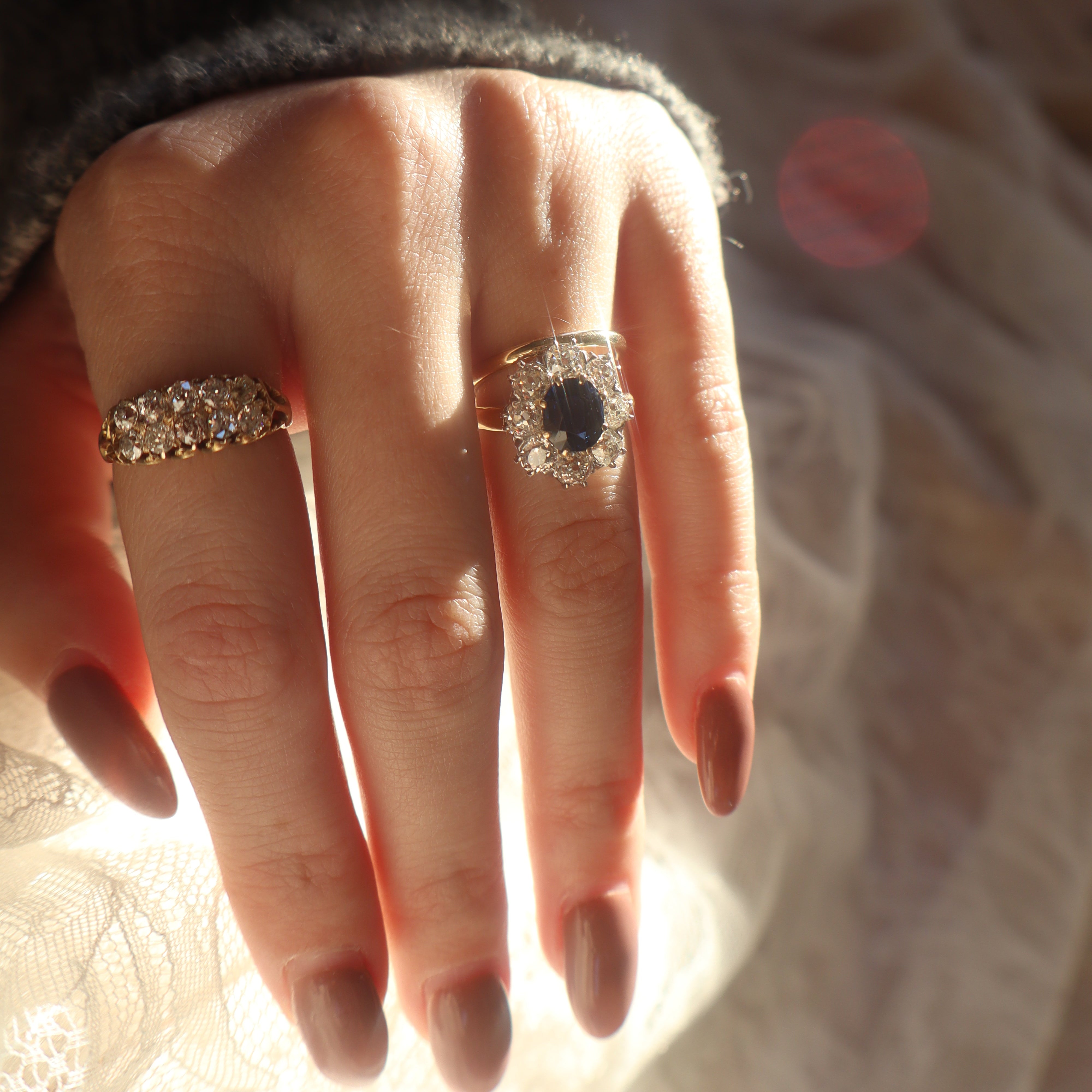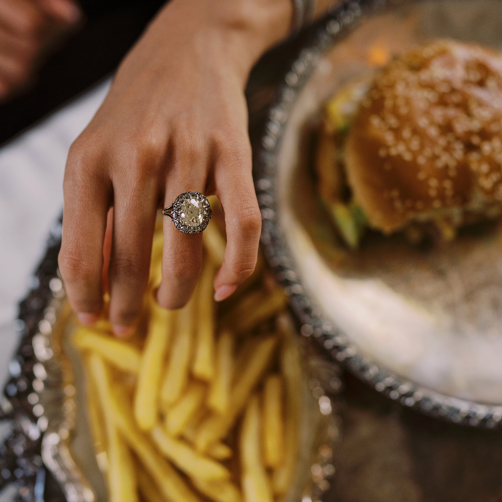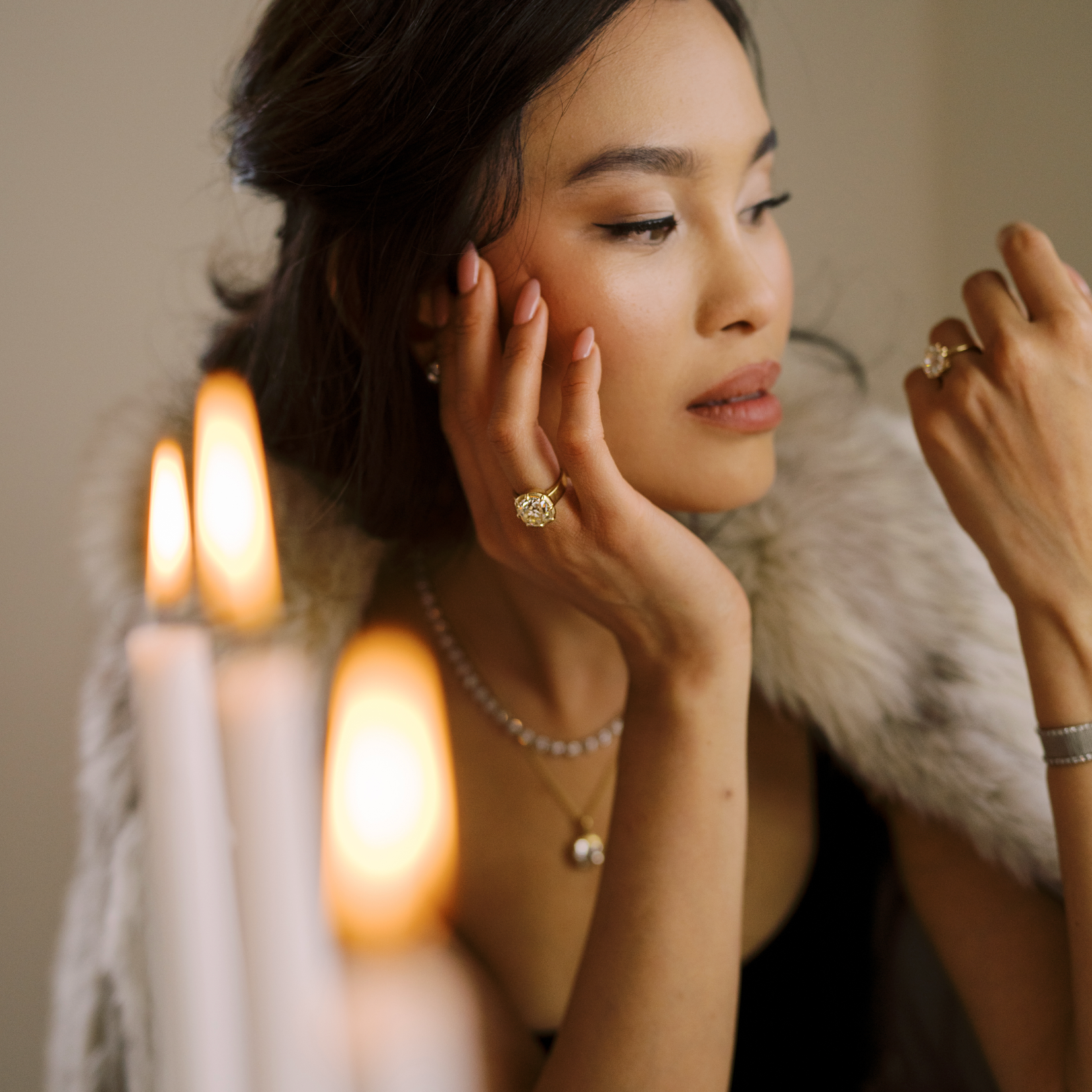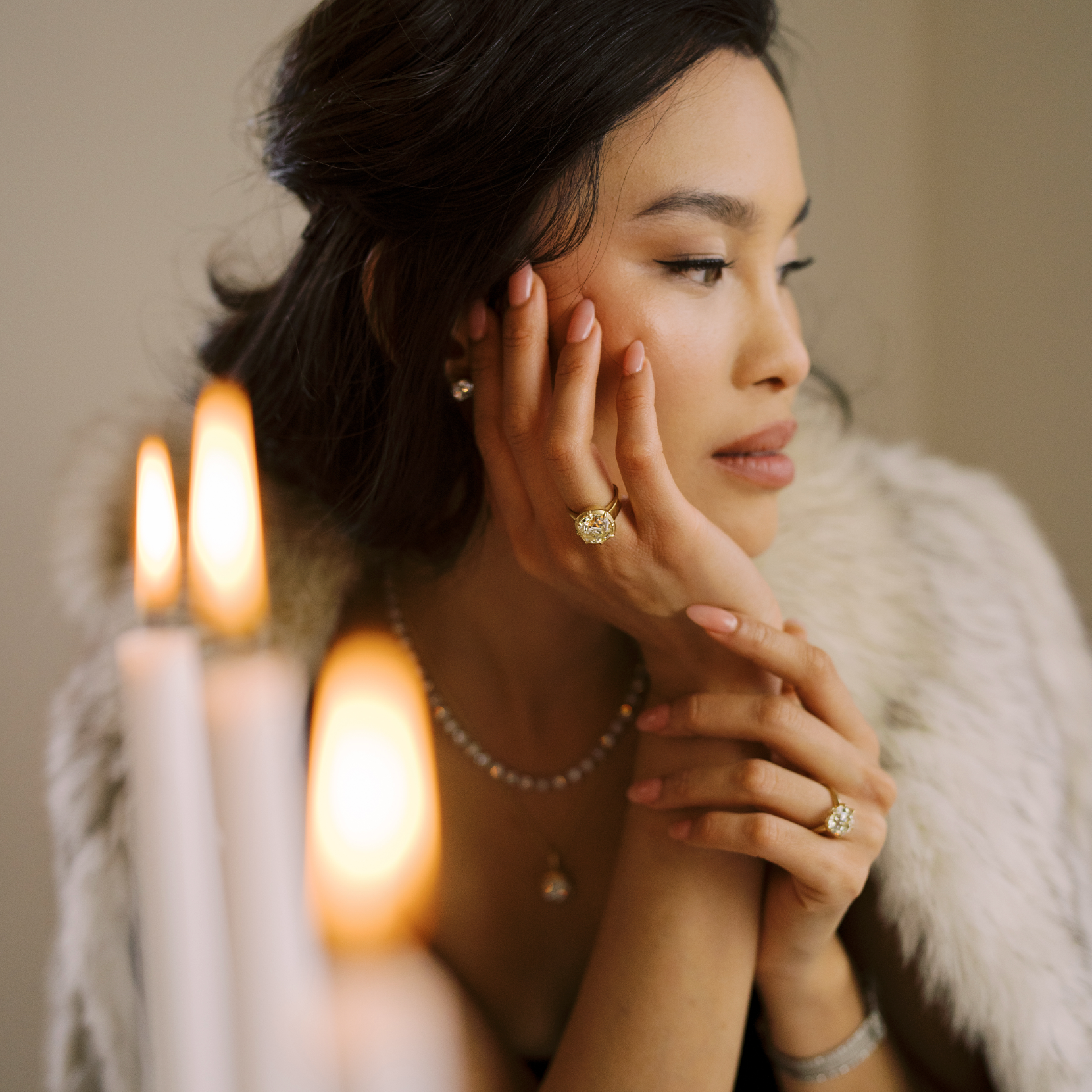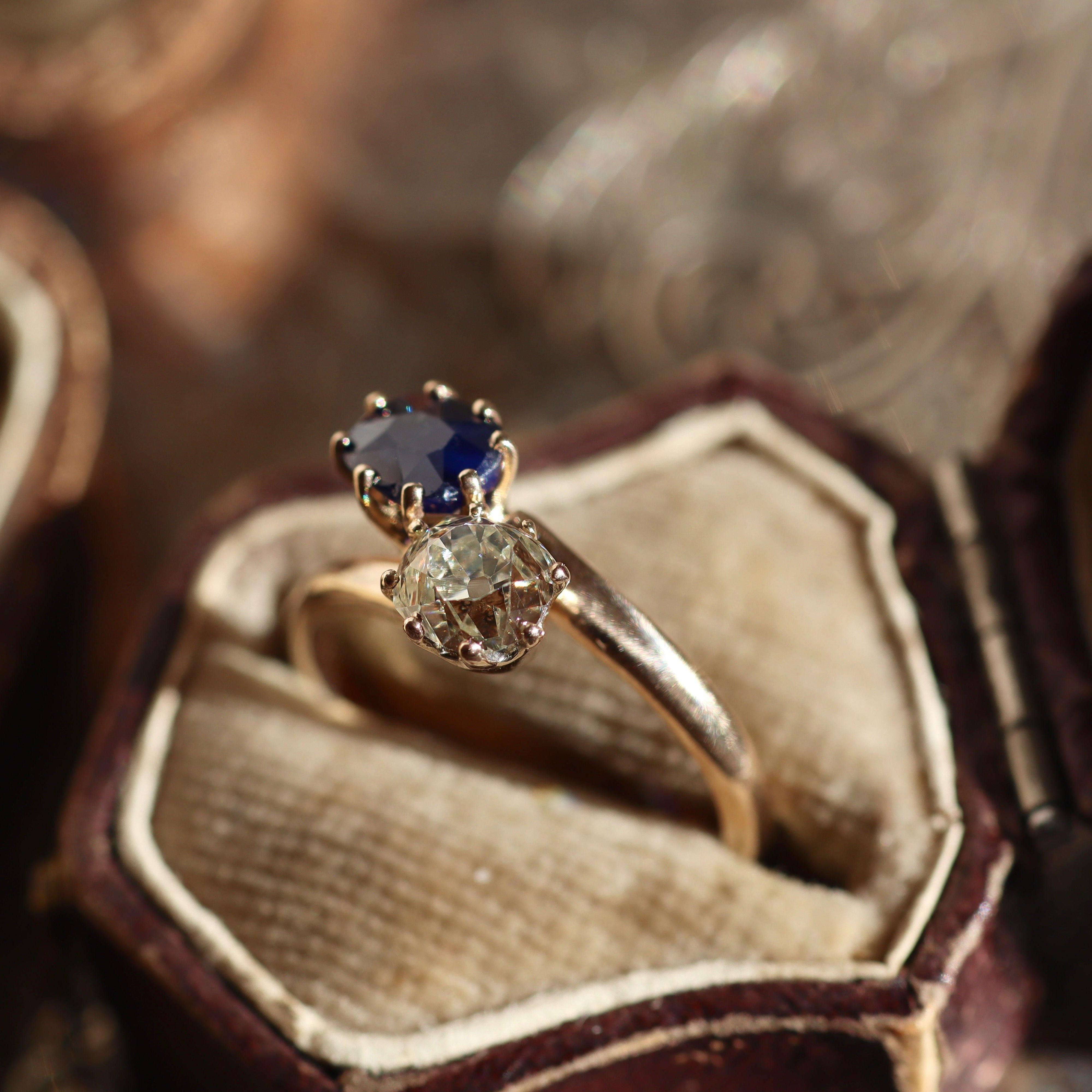 The faceting of antique diamonds is what makes them so beautiful. More broad and open, this creates the signature look of an antique stone. Diamonds were cut in this style up until the 1940s- when they shifted to the modern style of tightly knit, more splintery faceting. The broad facets create a dynamic play of light that makes these stones feel more alive.