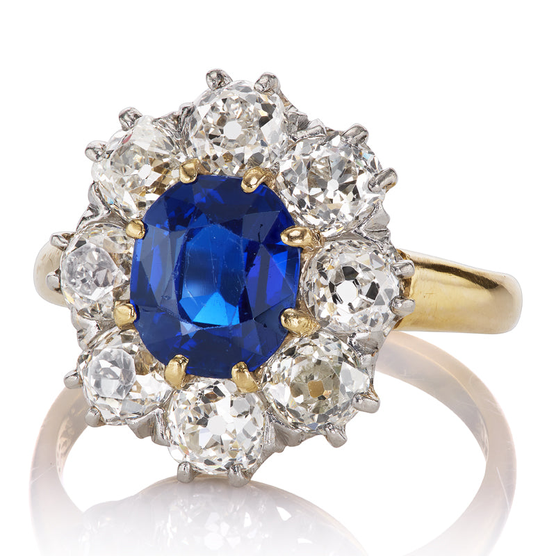 Antique diamonds are known for their high crowns. The crown is the top part of the diamond when viewed from the side. This higher crown is what contributes to an antique diamond's wonderful play of light.