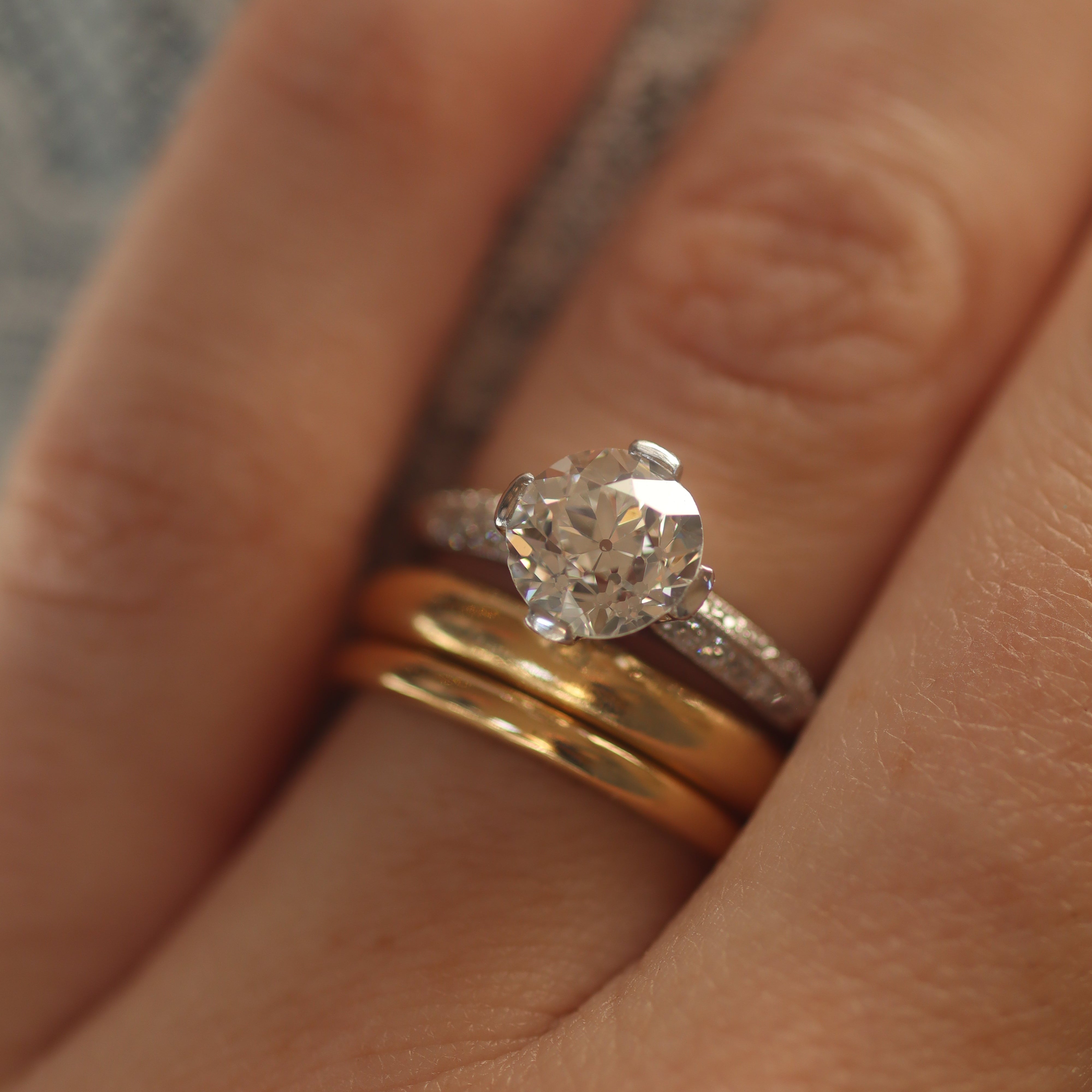 The faceting of antique diamonds is what makes them so beautiful. More broad and open, this creates the signature look of an antique stone. Diamonds were cut in this style up until the 1940s- when they shifted to the modern style of tightly knit, more splintery faceting. The broad facets create a dynamic play of light that makes these stones feel more alive.