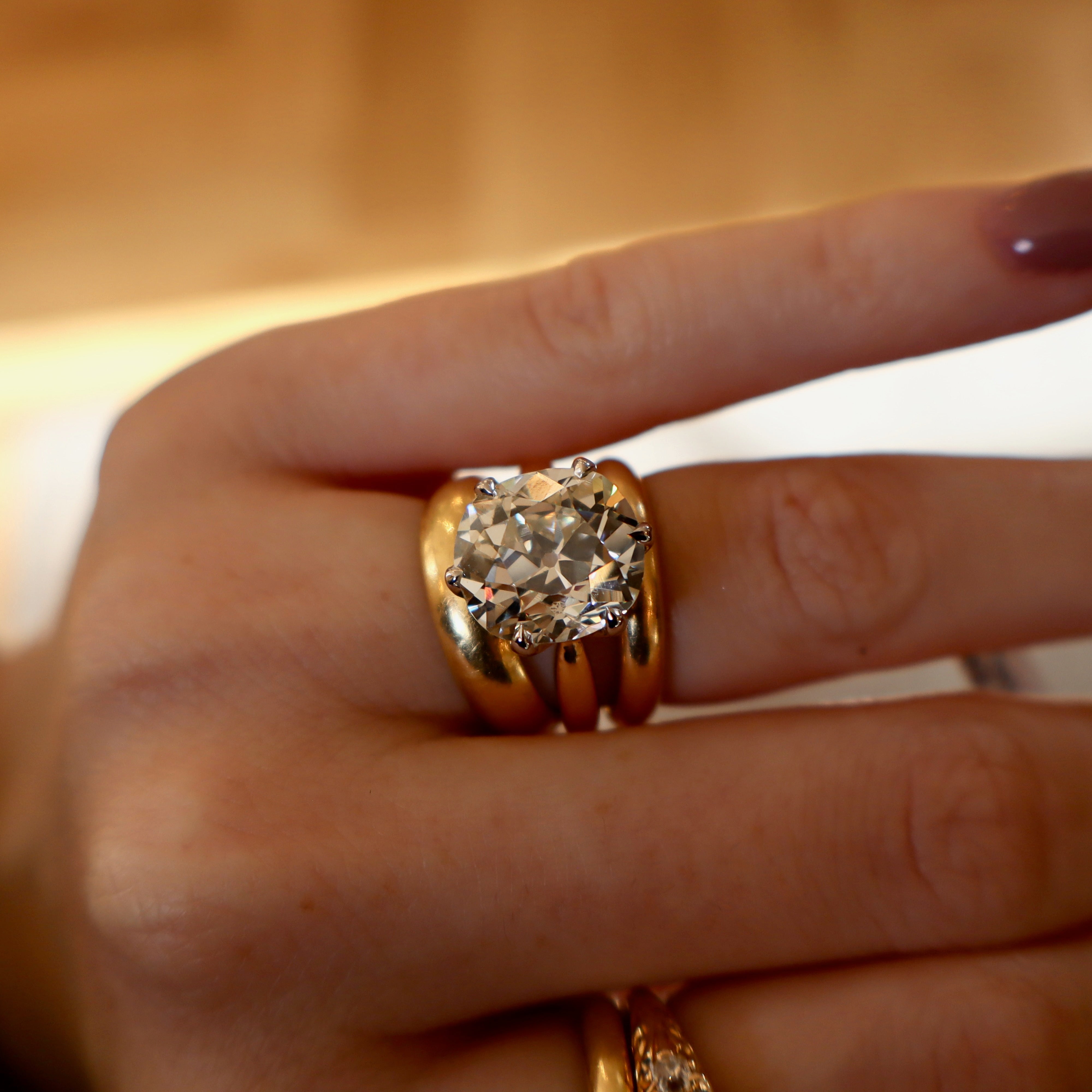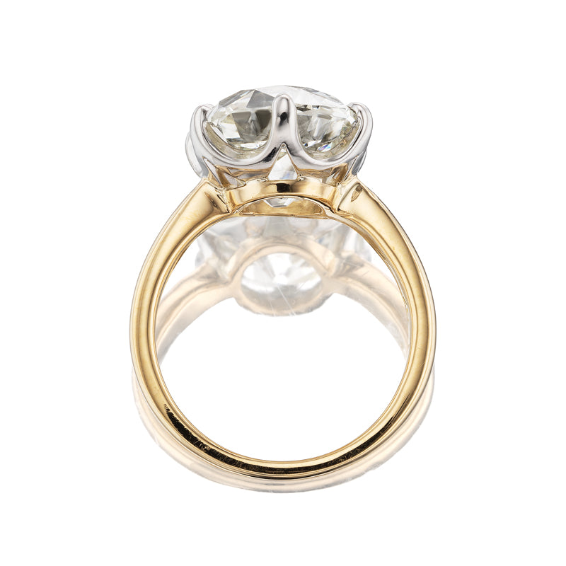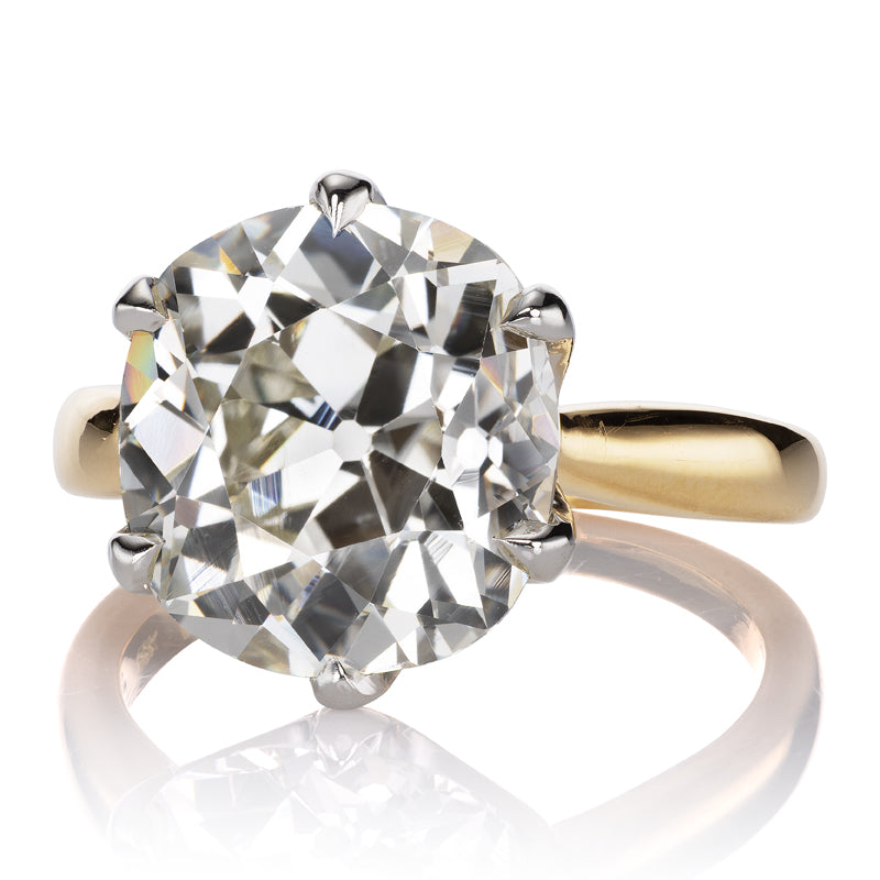 The faceting of antique diamonds is what makes them so beautiful. More broad and open, this creates the signature look of an antique stone. Diamonds were cut in this style up until the 1940s- when they shifted to the modern style of tightly knit, more splintery faceting. The broad facets create a dynamic play of light that makes these stones feel more alive.