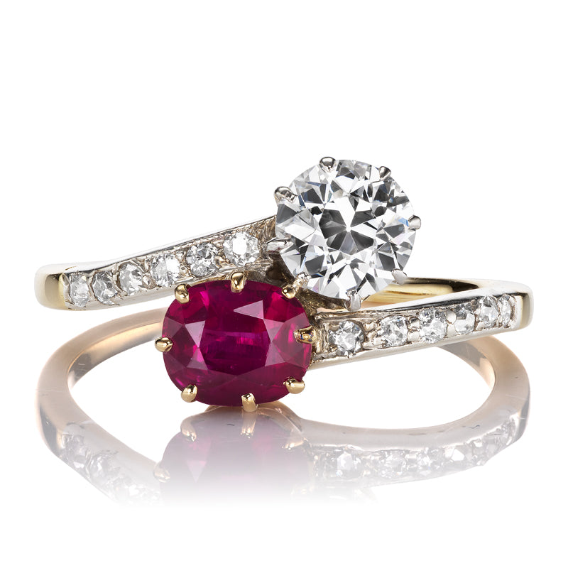 Edwardian Ruby and Diamond Toi et Moi Ring
