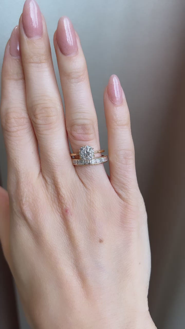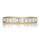 The Sawyer Half Hoop is an AB original design made right here in NYC. This diamond band has carré cut diamonds of approximately F-G color, VS clarity that wrap roughly halfway around the band. We currently have a limited supply of select sizes in-stock and ready to ship, and the great thing about these half hoops is that each one can be resized!