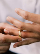 The Eric band is a AB-made Men's wedding band. The band is made with 18 karat yellow gold and has a rounded edge! The dimensions of this band are 5.5 mm wide by 2 mm tall.