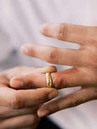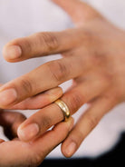 This band is the most "classic" gold band with a good heft to it and a smooth, rounded shape that is über comfortable.
