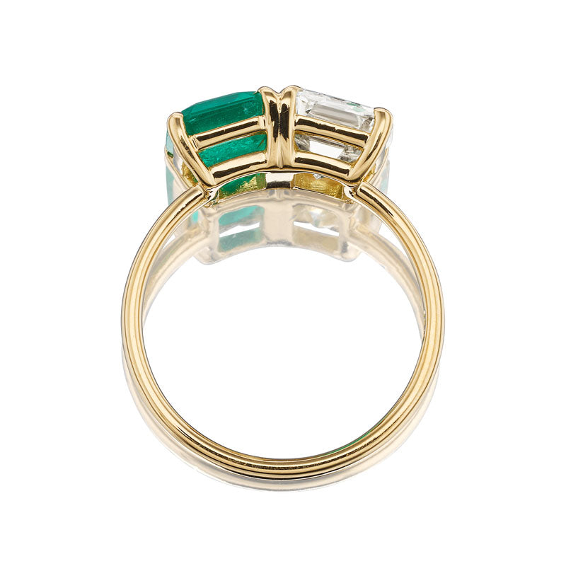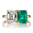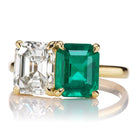 Toi et Moi Emerald Cut Diamond and Emerald Ring