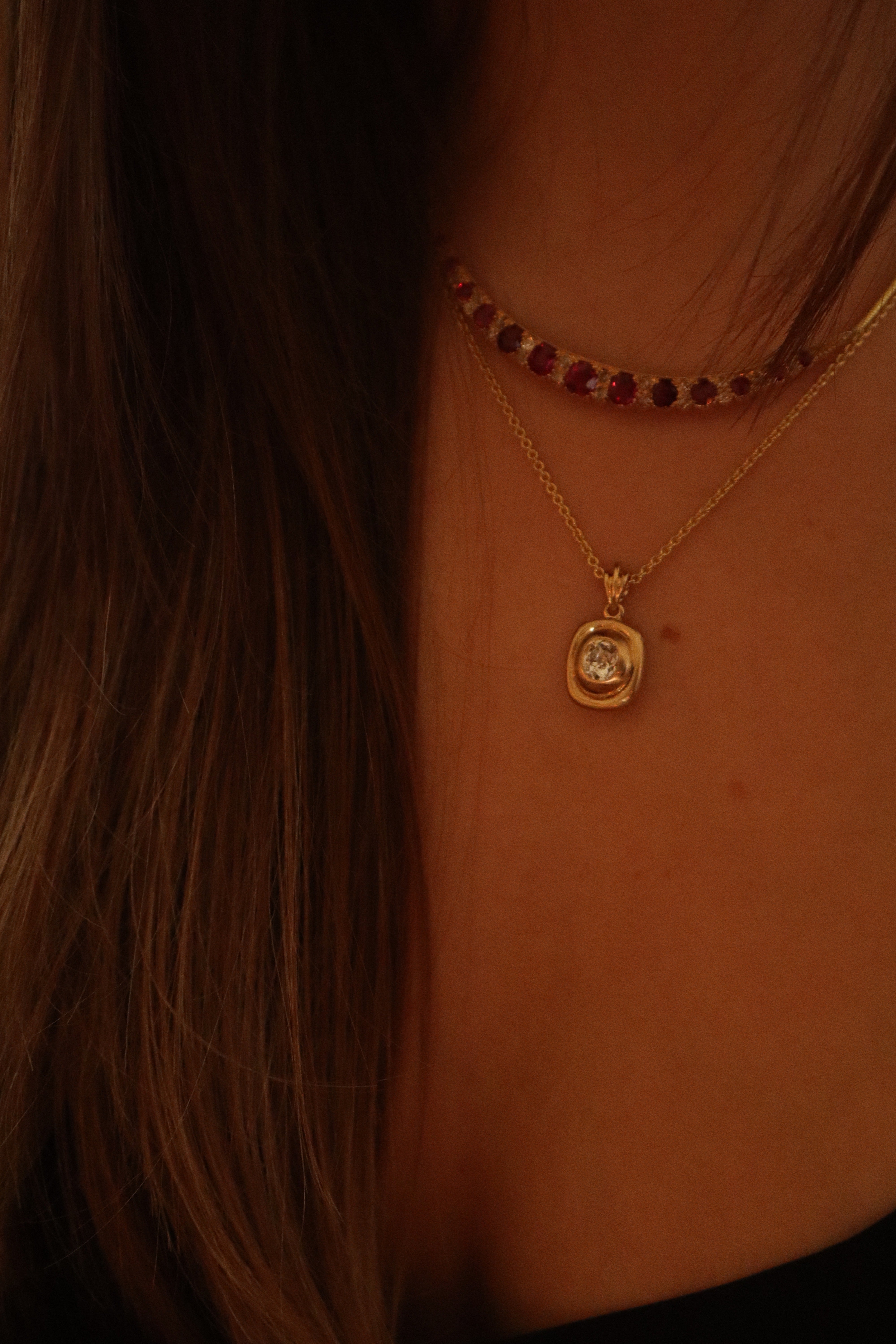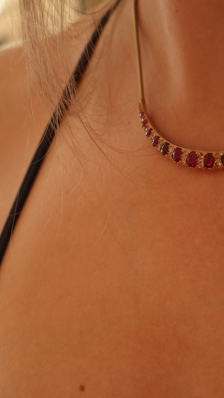 Love amongst the stars- ruby lovers will certainly fall for our Moonstruck No. 2 necklace. A symbol of passion and fidelity, the luscious antique rubies in this piece flash with tones of juicy berry, just-bitten red, and rich plum. We adore the buttery gold setting for these sensual stones paired with antique starlit diamonds. Statement-making on its own but also easy to layer in other favorite pieces.