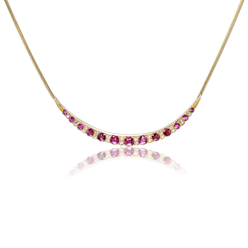 Antique Ruby and Diamond Crescent Necklace on Snake Chain
