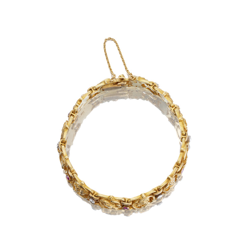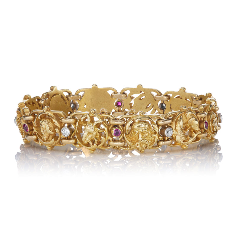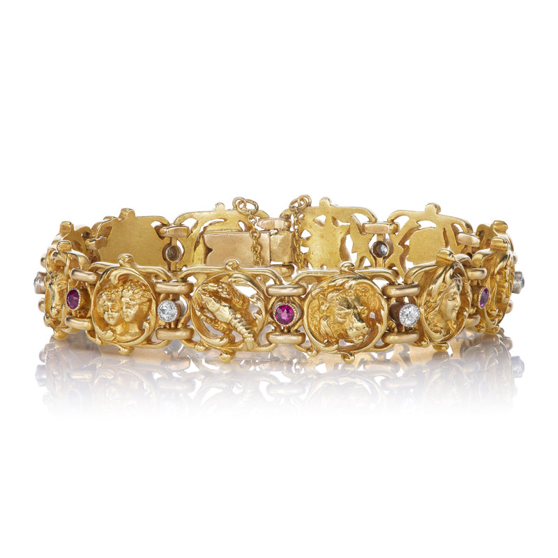 Victorian 18k Gold Zodiac Bracelet with Rubies and Diamonds