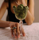 A classic and feminine three-stone ring that embodies Edwardian period refinement, the Lumina ring centers a large, glowing Colombian emerald nestled between two bright diamonds. We adore how the elegant, floral basket contrasts with the warm gold band. This piece spans the finger wonderfully and stacks beautifully with our detailed Jane Band or with our Chunky Band for a clean look.
