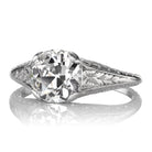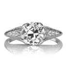 The Avire ring is an authentic antique diamond ring from the Edwardian Era, circa 1910. The ring centers a GIA-certified 1.54-carat Old European Cut Diamond of K color, VS1 clarity. The stone is prong set in an antique platinum setting with intricate hand-engraved detailing throughout the band. The ring is currently size 5.5 and can be resized!