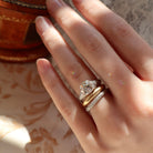 A beautiful example of early 1900s design- this Edwardian-era diamond ring features delicate, hand-engraved details showcasing the extraordinary craftsmanship of the period. A dainty lotus flower detail is tucked into the basket, while finely engraved orange blossoms along the band add a romantic touch. Feminine, thoughtful, and exquisitely detailed, the Avire is a timeless reflection of Edwardian artistry at its finest.