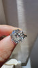 Based on one our all-time favorite antique finds, this ring incorporates vintage elements such as oxidized metal, delicate side stones, and plenty of prongs. The absolutely gorgeous old mine cut at the center is bright and beautifully-faceted, catching all of the light thrown its way. She has an incredible spread to her for a big and glamorous look. A team-favorite, for sure.