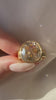 A spready diamond lover's dream- 3 carats that spreads like a near 5 carat diamond. It has those broad, open facets that we adore so much and the white color shimmers beautifully against the sleek, buttery gold bezel setting.