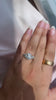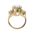 The Marielle 5.01 ring is an AB original design made right here in NYC. The ring centers a GIA-certified 5.01-carat old mine cut diamond of K color, VS2 clarity. An old mine cut diamond of coordinating color and clarity, combining for 1.42-carats, is set to either side of the center stone. The stones are set in a 12-prong 18kt yellow gold setting. The ring is currently size 6.75 and can be resized!