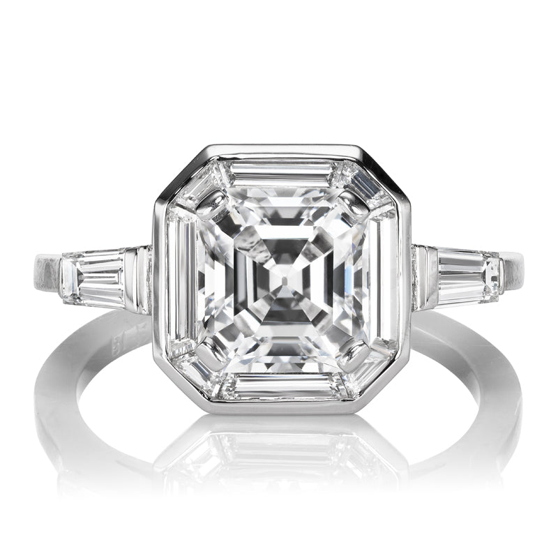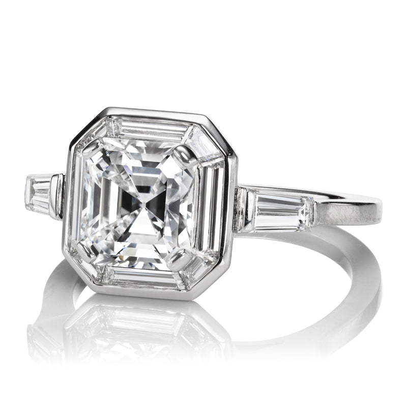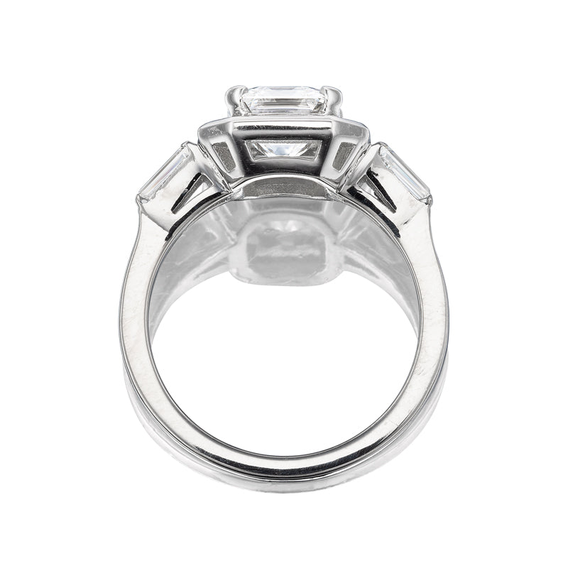 Colorless 1.75ct Asscher Cut Diamond Ring with Baguette Halo