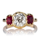 1.5 Carat Old Mine Cut Diamond Engagement Ring with Ruby Side Stones