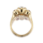 The Florian 1.53 ring is an AB original design. The ring centers a GIA-certified 1.53-carat Old Mine Cut diamond of J color, SI1 clarity. On each side of the center stone is a ruby, both totaling 0.82 carats. The stones are collet-set in our signature 18kt yellow gold setting. The ring is currently size 5.5 and can be resized!