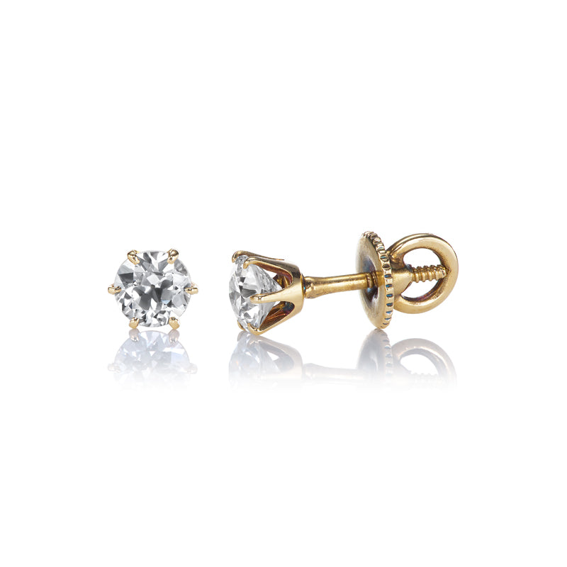 A vintage take on a classic jewelry essential, the Gemma diamond studs are perfectly sized for everyday wear! These bright Old European Cut stones catch the light beautifully, adding a hint of glamour to the ears. Gorgeous alone or as part of an ear stack or in a second piercing, the Gemma studs are as stylish today as ever.