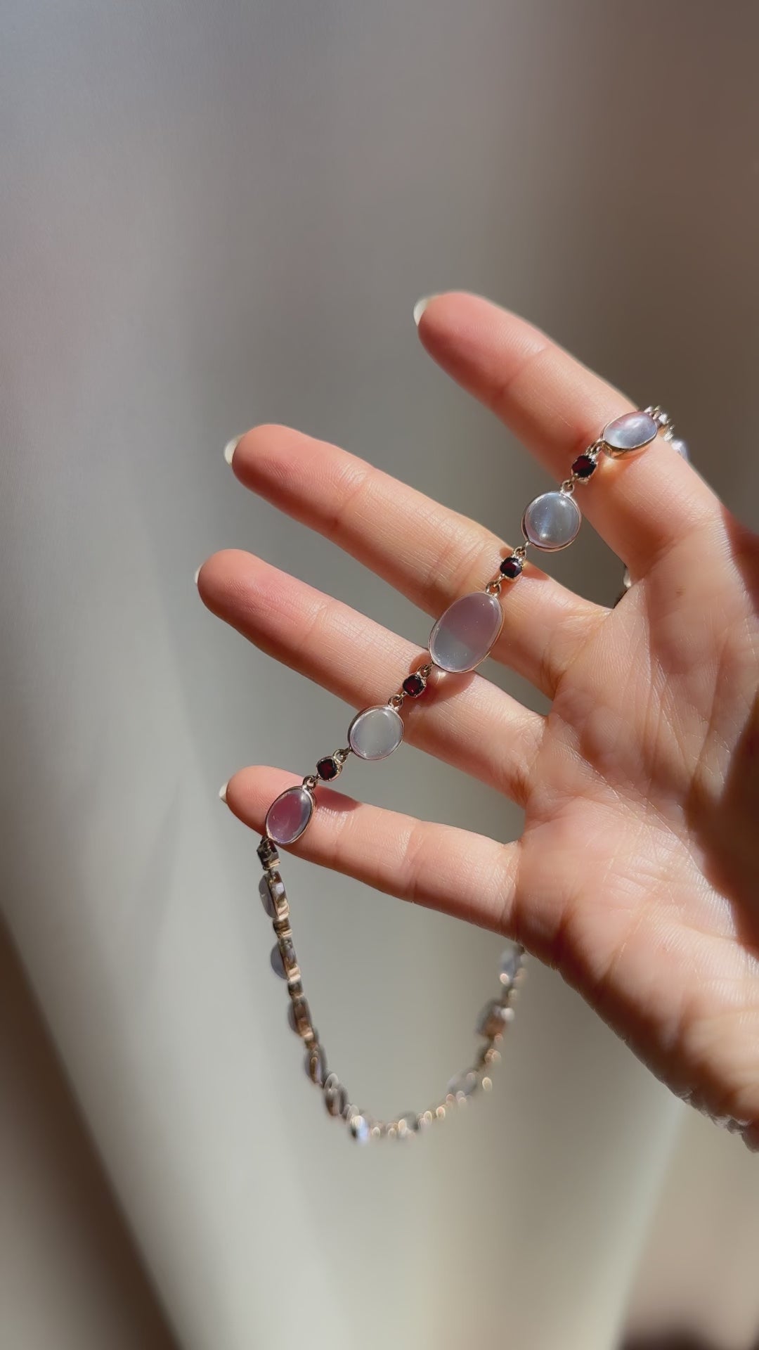 Garnets and moonstones create this effortlessly chic and neutral necklace that can be dressed up or down for the perfect vintage touch.
