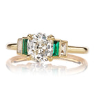 1.2 Carat Old Mine Cut Diamond Ring with Emerald Side Stones