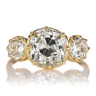 3.5 Carat Old Mine Cut Three Stone Diamond Ring in 18kt Gold Collet Setting