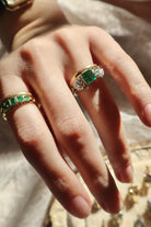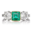 Antique Colombian Emerald and Diamond Three Stone Ring