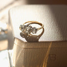 A fully antique treasure- these beautiful, brightly colored stones truly shine and float on the finger. The stones are full of antique charm with their broad faceting and chunky, soft shapes. Their bright white color adds extra shimmer and shine to these lively diamonds. An easy ring to stack and style with- we love her with a plain golden band like our Moxy or Chunky Bands, or add a little extra whimsy with our Queen of Hearts Band.