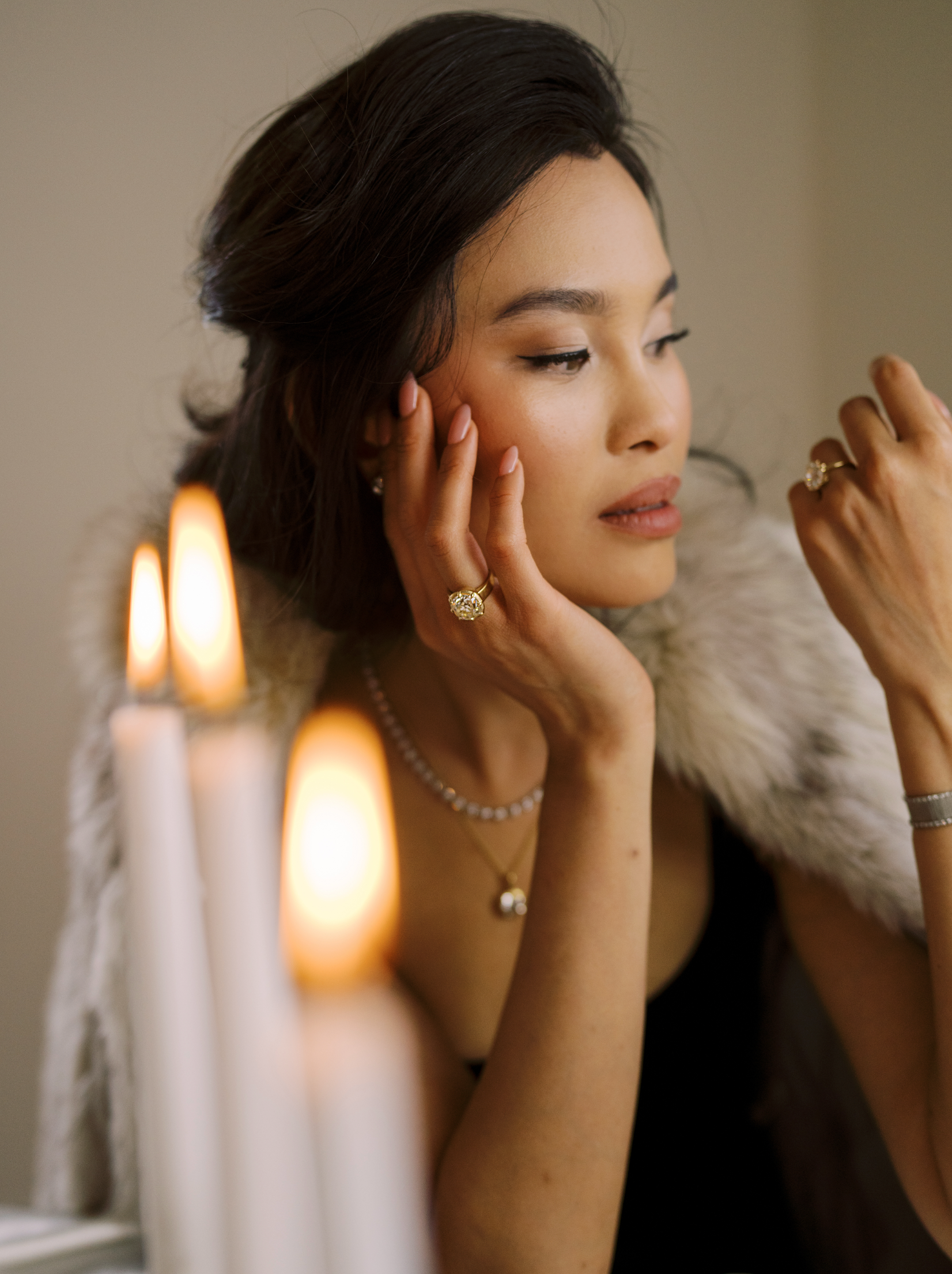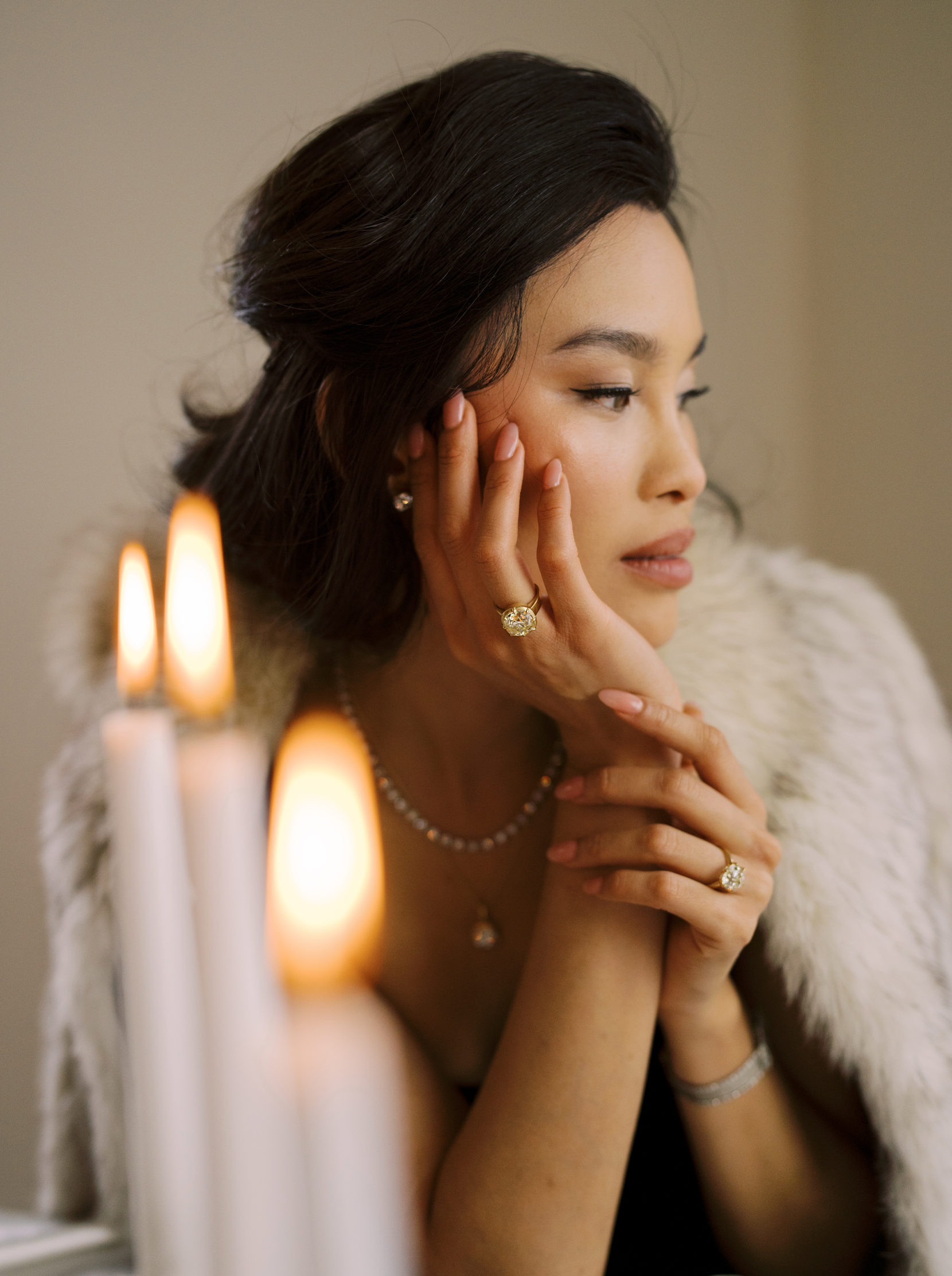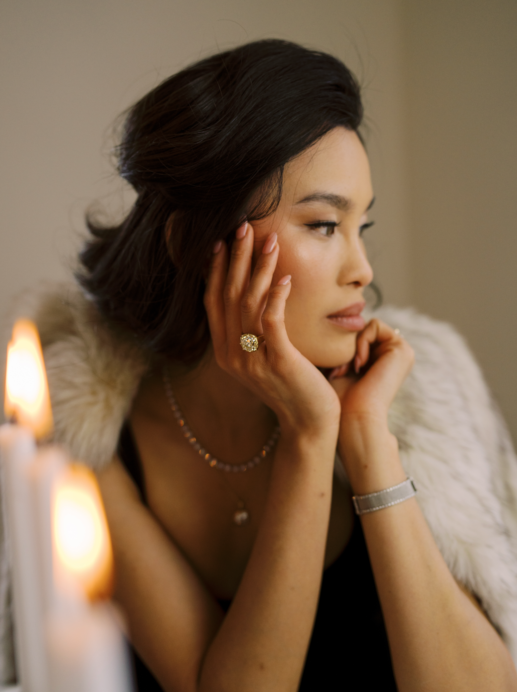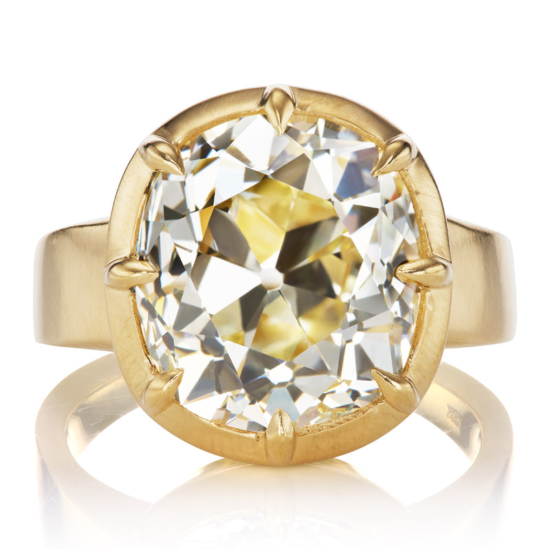 The Allie 8.10 ring is an AB original design. The ring centers a GIA-certified 8.10 Old Mine Cut diamond of W-X color, VS2 clarity. The stone is set in an 18kt yellow gold collet setting on a thick gold band. The ring is currently size 6 and can be resized!