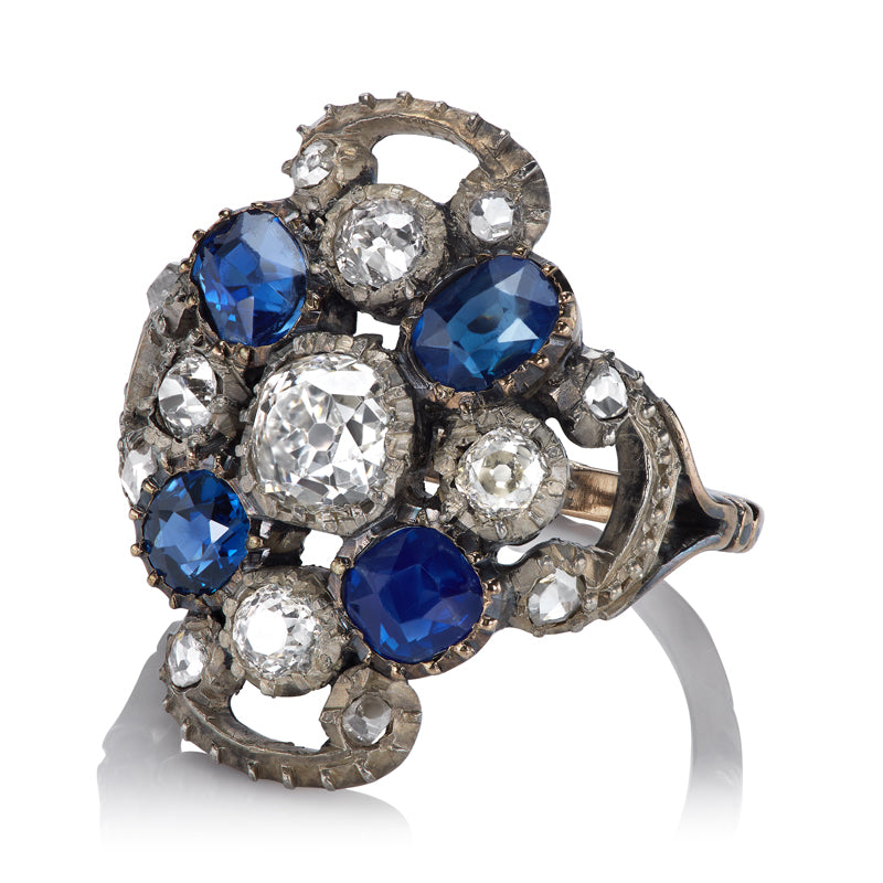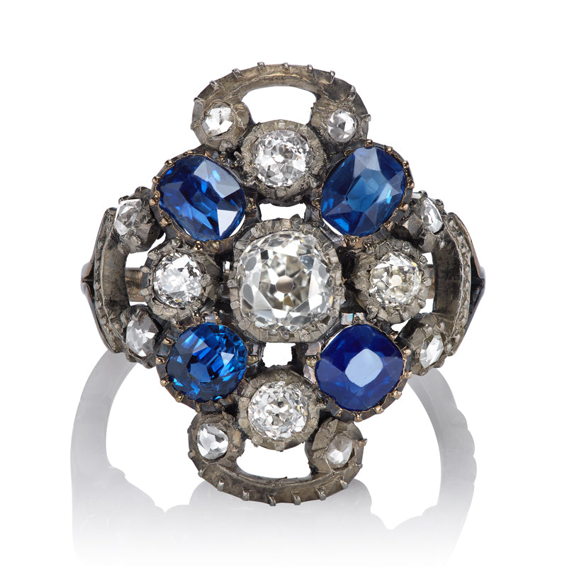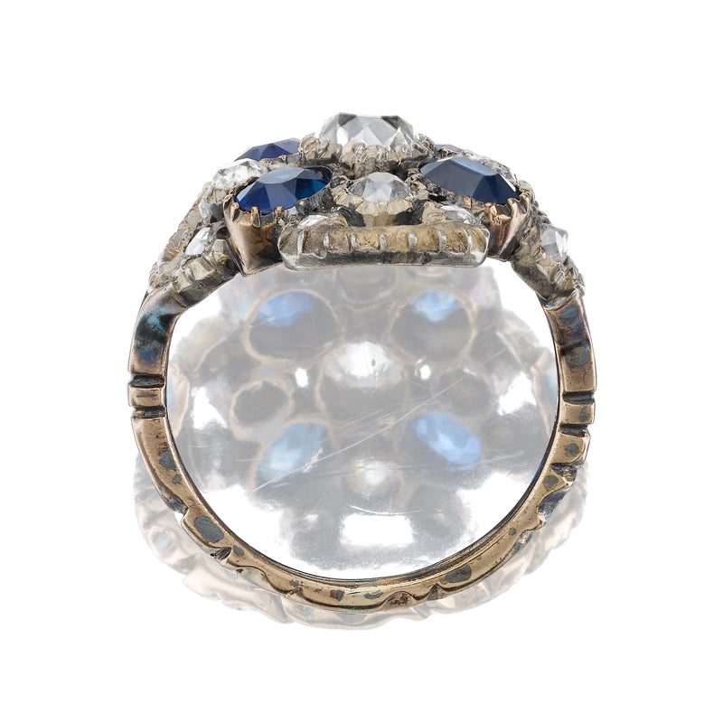 Antique Georgian Sapphire and Old Cut Diamond Cluster Ring