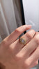 The Angelina 0.79 ring is an AB-made design inspired by a vintage piece we once had. This gorgeous creation centers an IGI Certified 0.79 carat old mine cut diamond of M color, VS2 clarity. The center diamond is bezel-set in an 18kt yellow gold setting. To each side is an old European cut diamond with rose cut diamonds decorating the entire setting. The side diamonds all combine for approximately 0.40 carats. The ring is size 6 and can be resized!