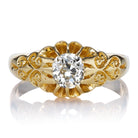 Whimsical Engraved Yellow Gold Old Mine Cut Vintage Engagement Ring