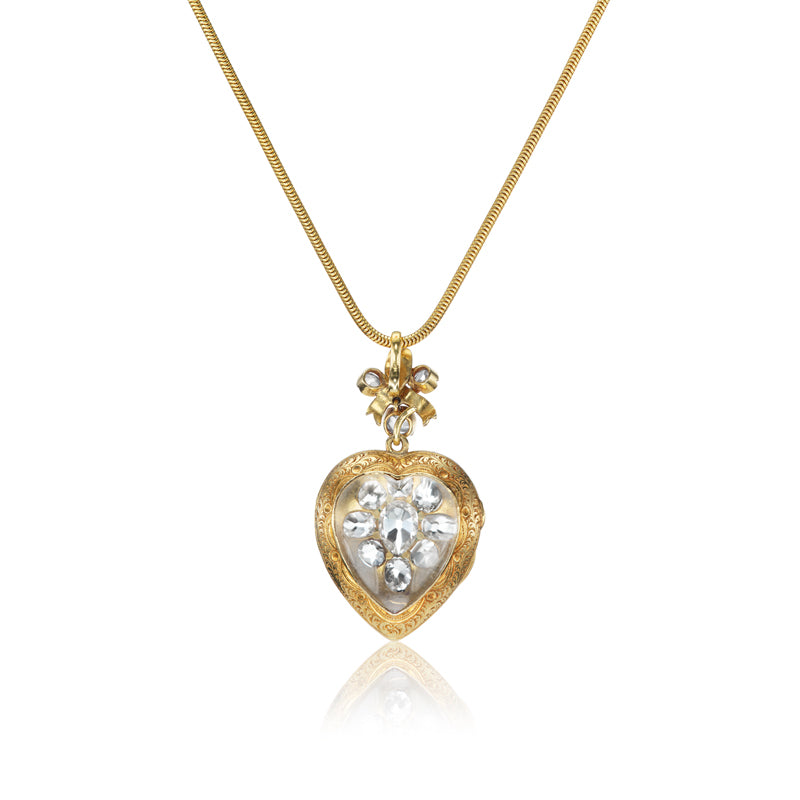 Antique Heart Locket Pendant with Old Mine and Pear Cut Diamonds