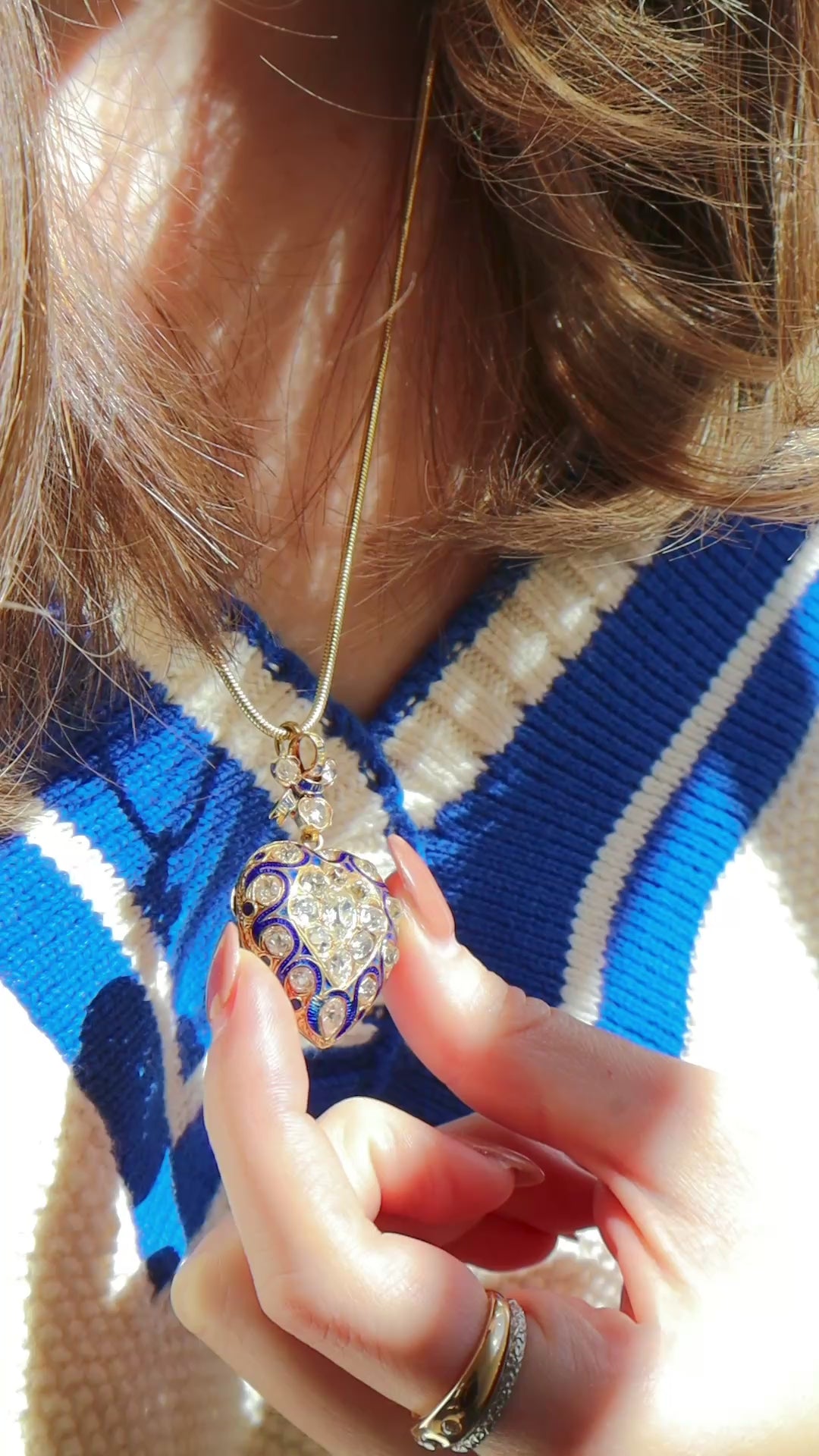 Gorgeous Victorian lockets in such pristine condition as this one are hard to come by, and we feel so lucky to have one to share! We love how the combination of Pear Cuts and Old Mines form a tapestry of diamonds in stunning deep blue enamel! Truly an heirloom, one-of-a-kind piece!