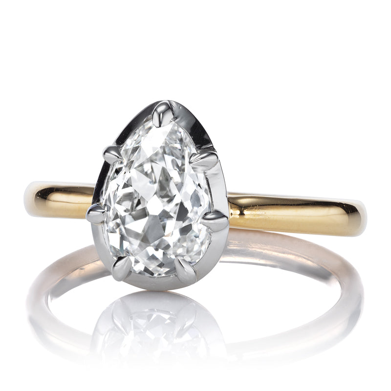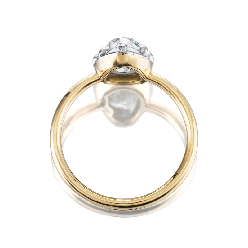 Antique Pear Cut Diamond in Two-Tone Collet Setting