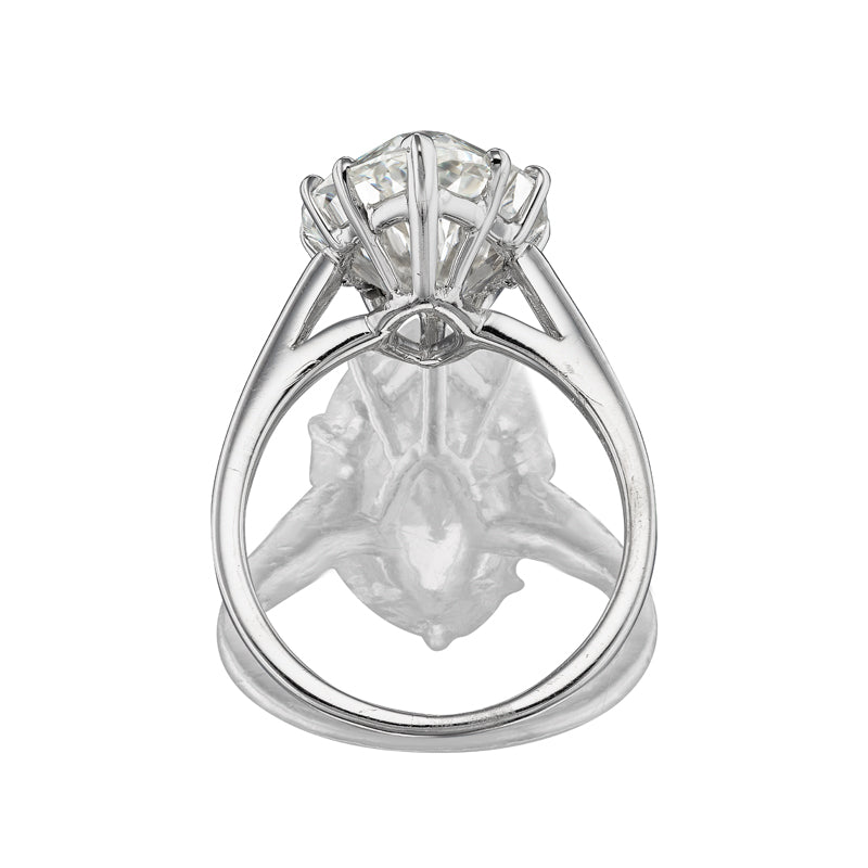 The Moval diamond shape that we dream of! Soft, sinuous curves create the perfectly proportioned "boat" of a diamond. The faceting has the lovely openness we love to see in our antique diamonds. The length of the stone makes this sizable stone very wearable as the carats travel up the finger in lieu of too far over. The Marquise cut originated in the 18th century to resemble a lover's lips and this diamond is the ideal example of that.