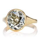 The Georgie 6.04 ring is an AB original design made right here in NYC. The ring centers a GIA-certified 6.04-carat old mine cut diamond of U-V color, SI1 clarity. The stone is bezel set in a chunky 18kt yellow gold setting. The ring is currently size 7.5 and can be resized!