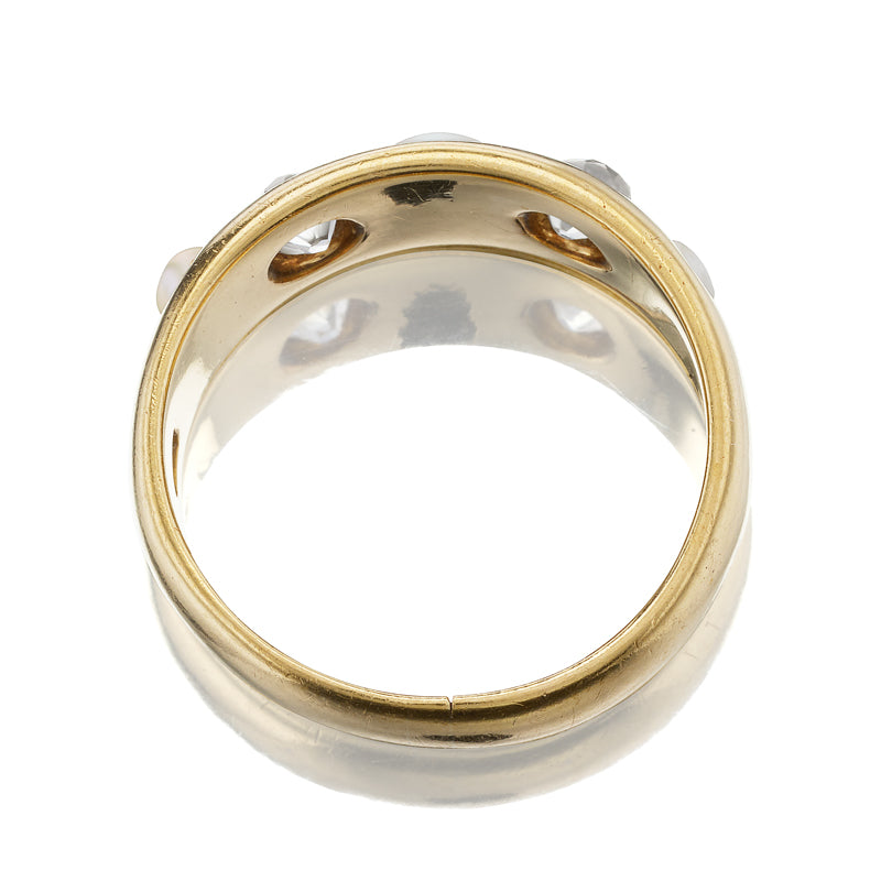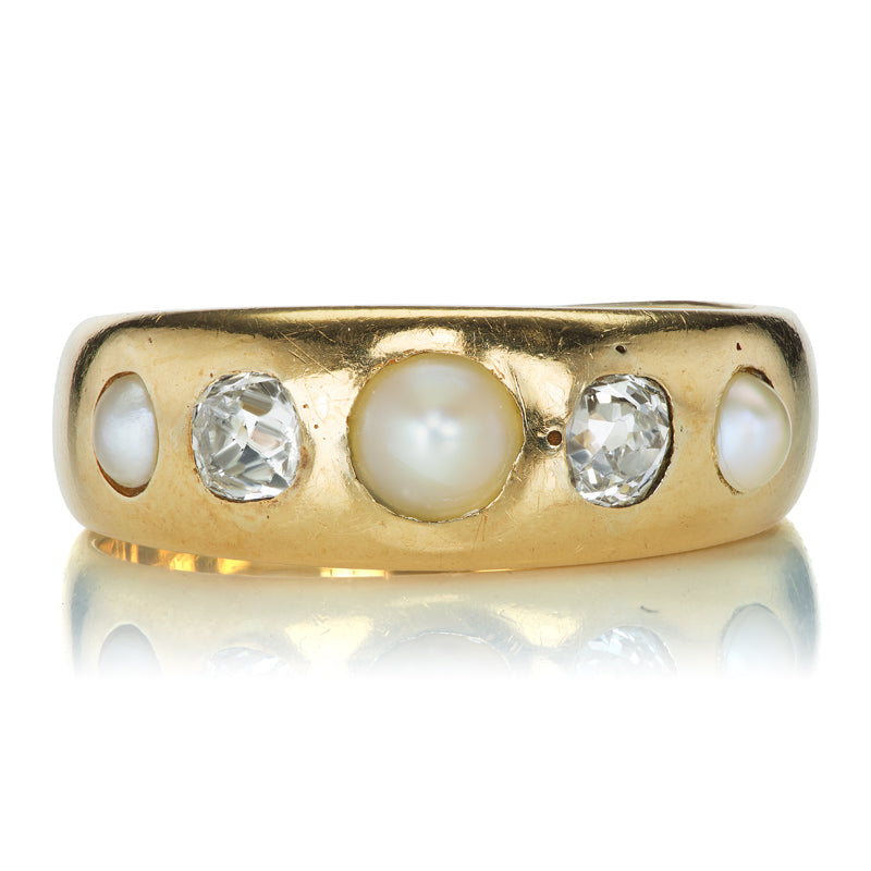 Antique Pearl and Diamond Gypsy Ring in 18kt Yellow Gold
