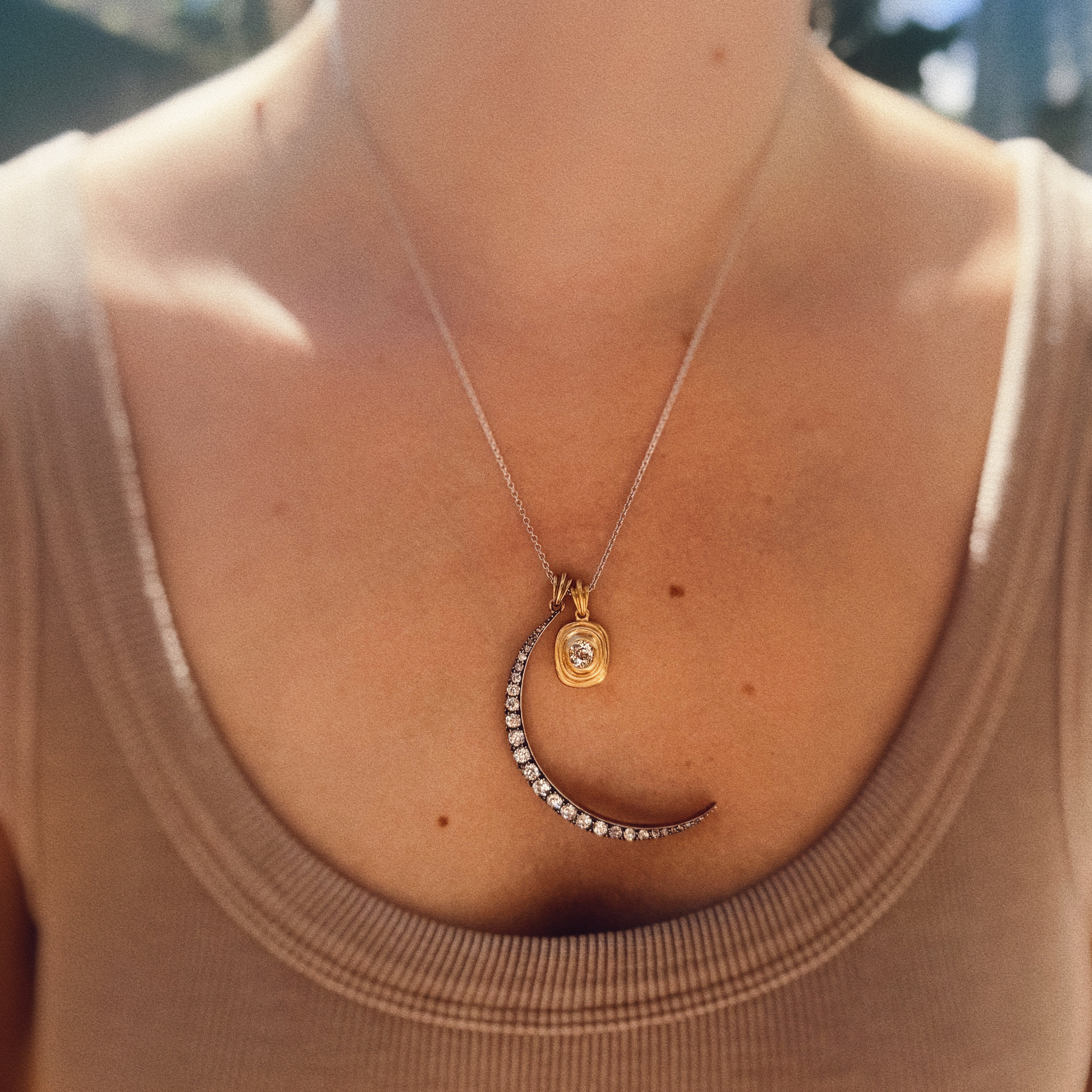 Our carefully curated selection of diamond and gemstone pendants are the perfect addition to any lover of antiques collection. Offering both authentic vintage pieces as well as AB Made designs, you'll find an exciting variety to choose from.