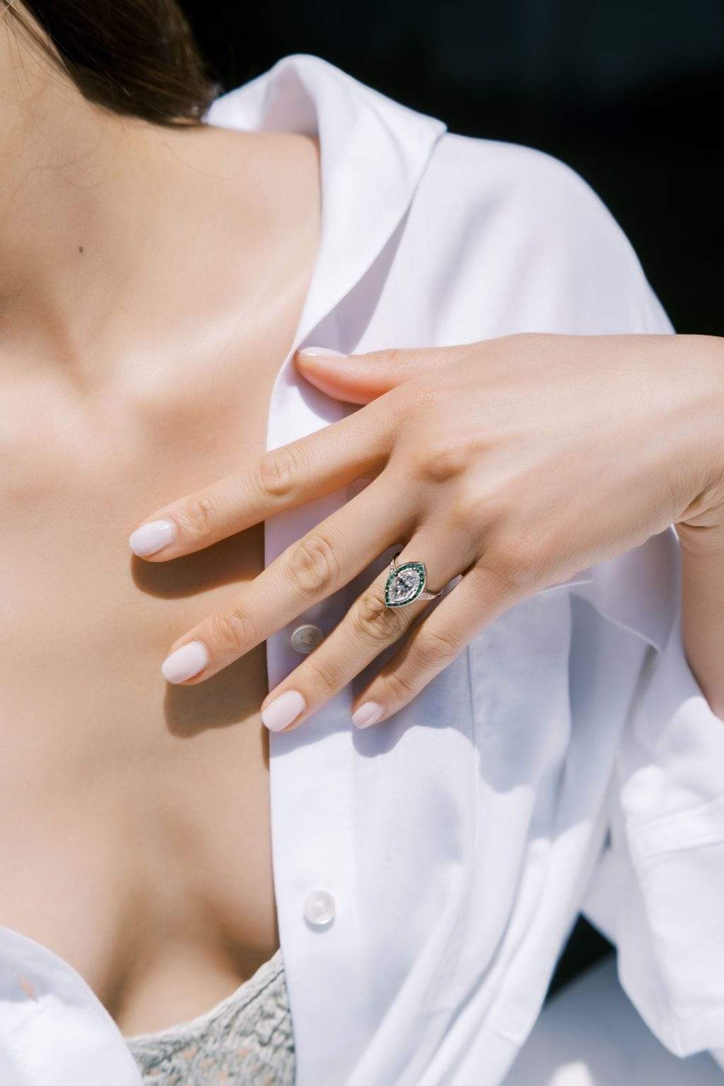 A stunning creation, if I do say so myself! We chose this vibrantly white, beautifully shaped Marquise diamond as the center stone for this Art Deco inspired beauty to really pop against the deep green emeralds. The ring is low-profile and create a lovely, elongated look on the finger!