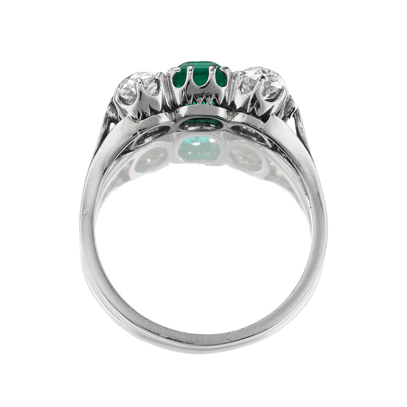 Beautiful Antique Colombian Emerald and Old Mine Cut Diamond Ring in Platinum Setting