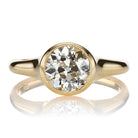 The Georgie 1.59 ring is an AB original design made right here in NYC. The ring centers a GIA-certified 1.59 carat Old European Cut diamond of J color, VS2 clarity. The stone is set in an 18kt Yellow Gold bezel setting with milgrain detailing around the stone. The ring is currently a size 6 and can be resized!