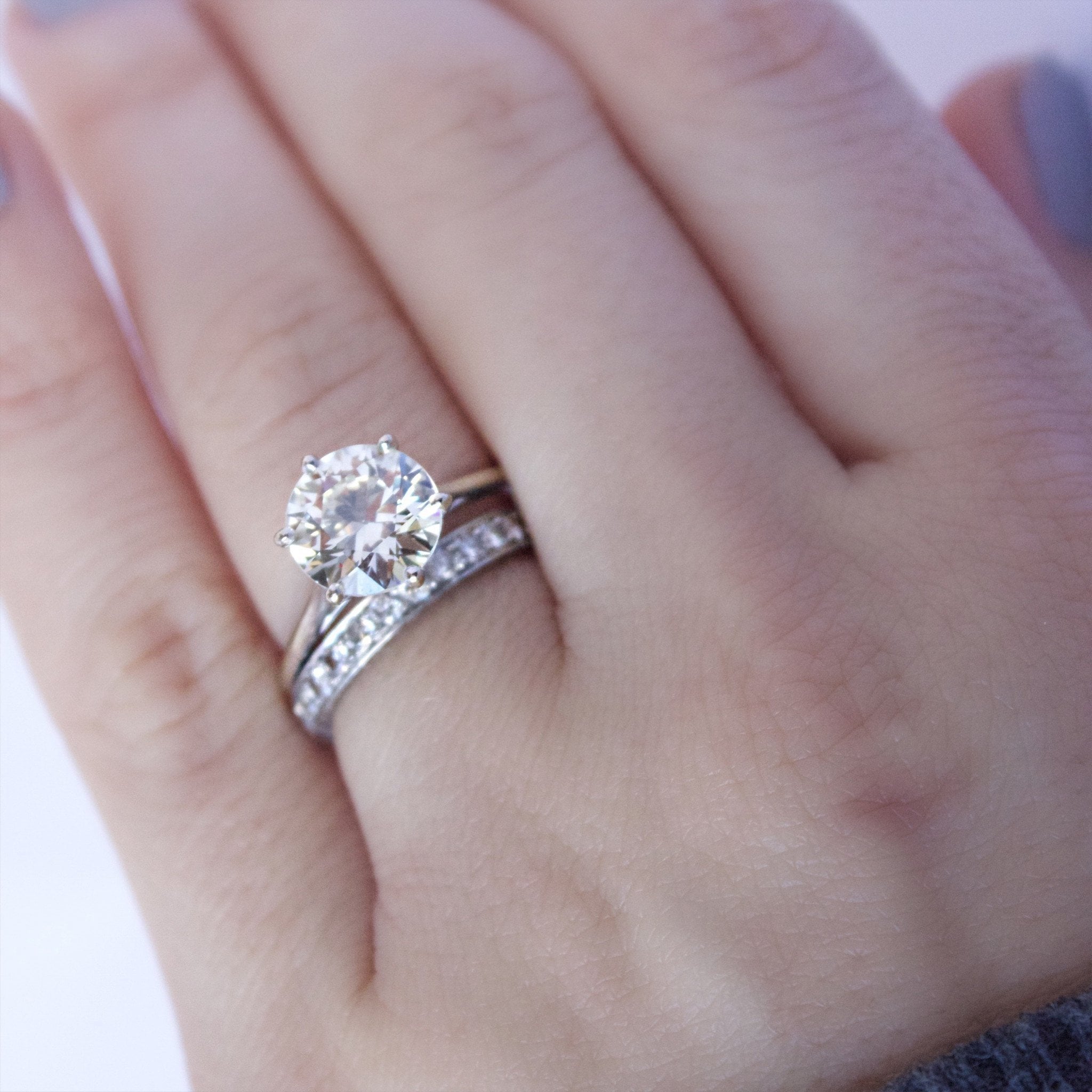 These diamonds are Full Cut which adds extra sparkle to this band. The engravings on the top and bottom of the band are a great vintage touch. This band is very versatile and can be paired with most any engagement ring or worn by itself!