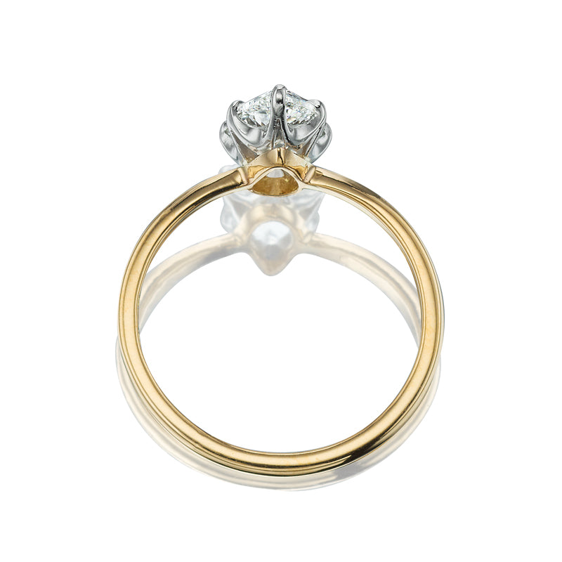 This bright and white pear is perfectly and simply set in her two-tone solitaire setting, keeping the stone the star of the show. A timeless, classic beauty.