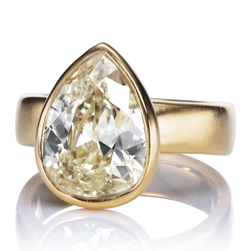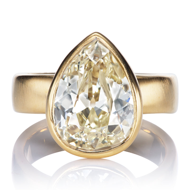 4ct Antique Pear Diamond in Yellow Gold Bezel