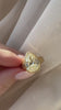 The Stanza 4.06 ring is an AB original design made right here in NYC. The ring centers a GIA-certified 4.06 carat Pear Shaped diamond of U-V color, SI1 clarity. The stone is bezel set in an 18kt Yellow Gold setting with a thick golden band. The ring is currently size 6 and can be resized!
