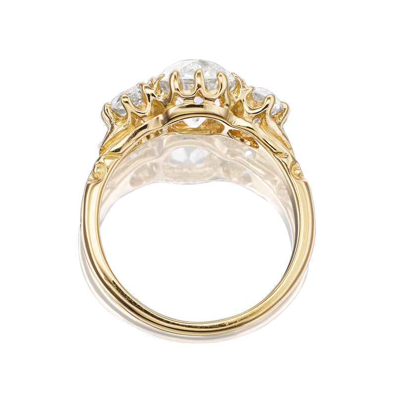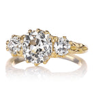Whimsical Three Stone Old Mine Cut Diamond Engagement Ring in 18kt Gold
