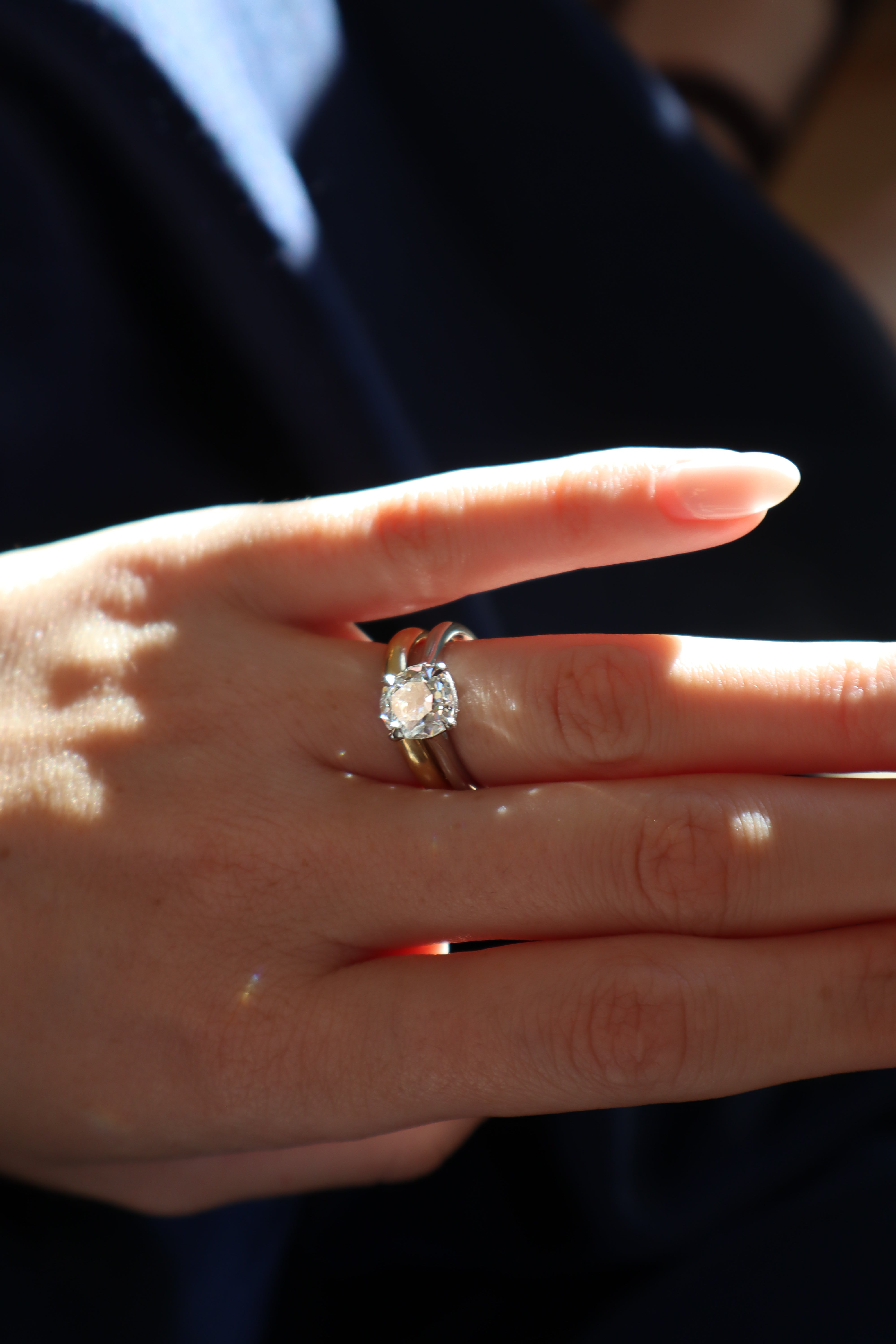 2 Carat Bright Old Mine Cut Diamond in Platinum Prong Setting