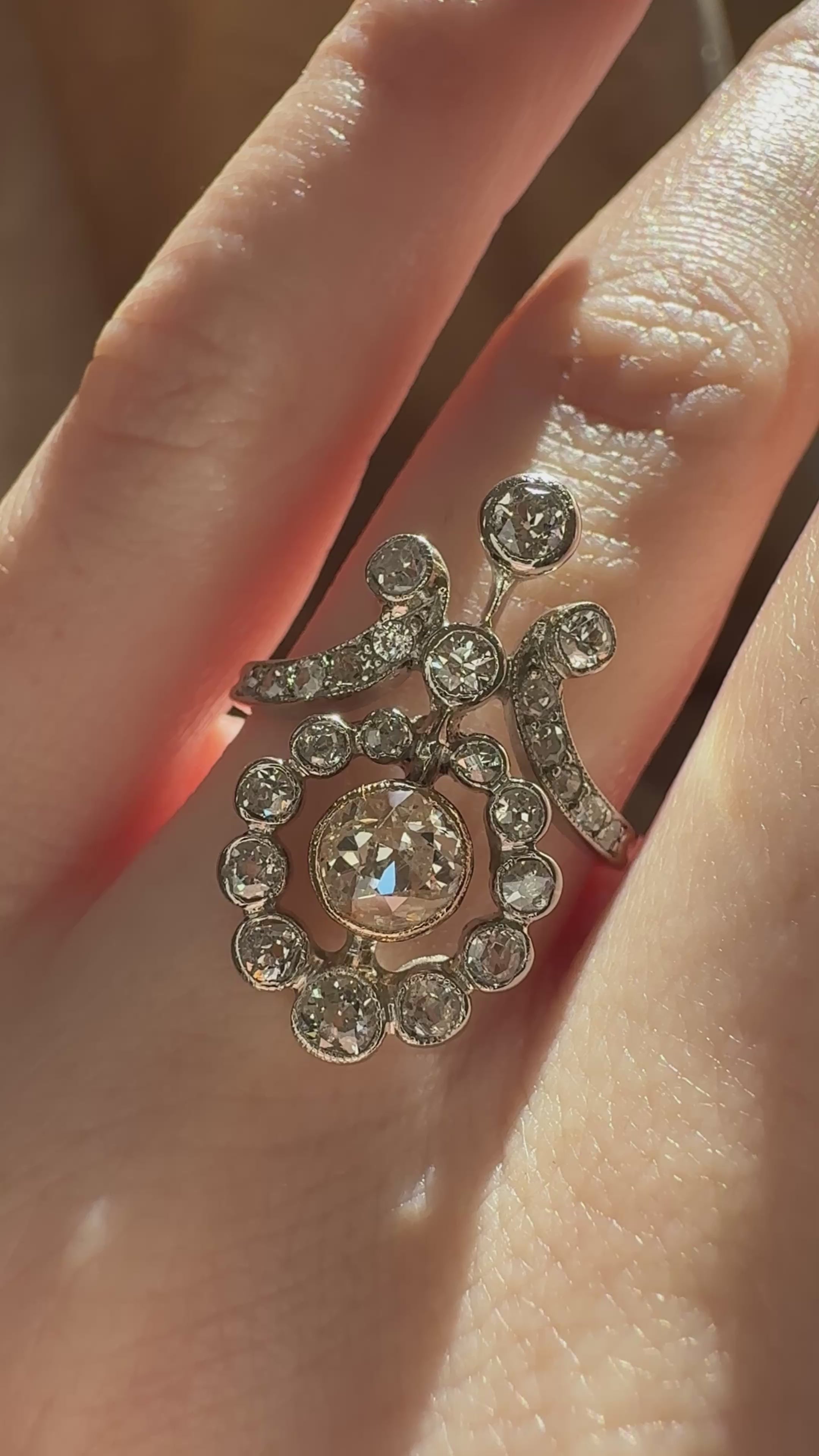 Old European Cut Diamond Tiara-Like Belle Époque Ring