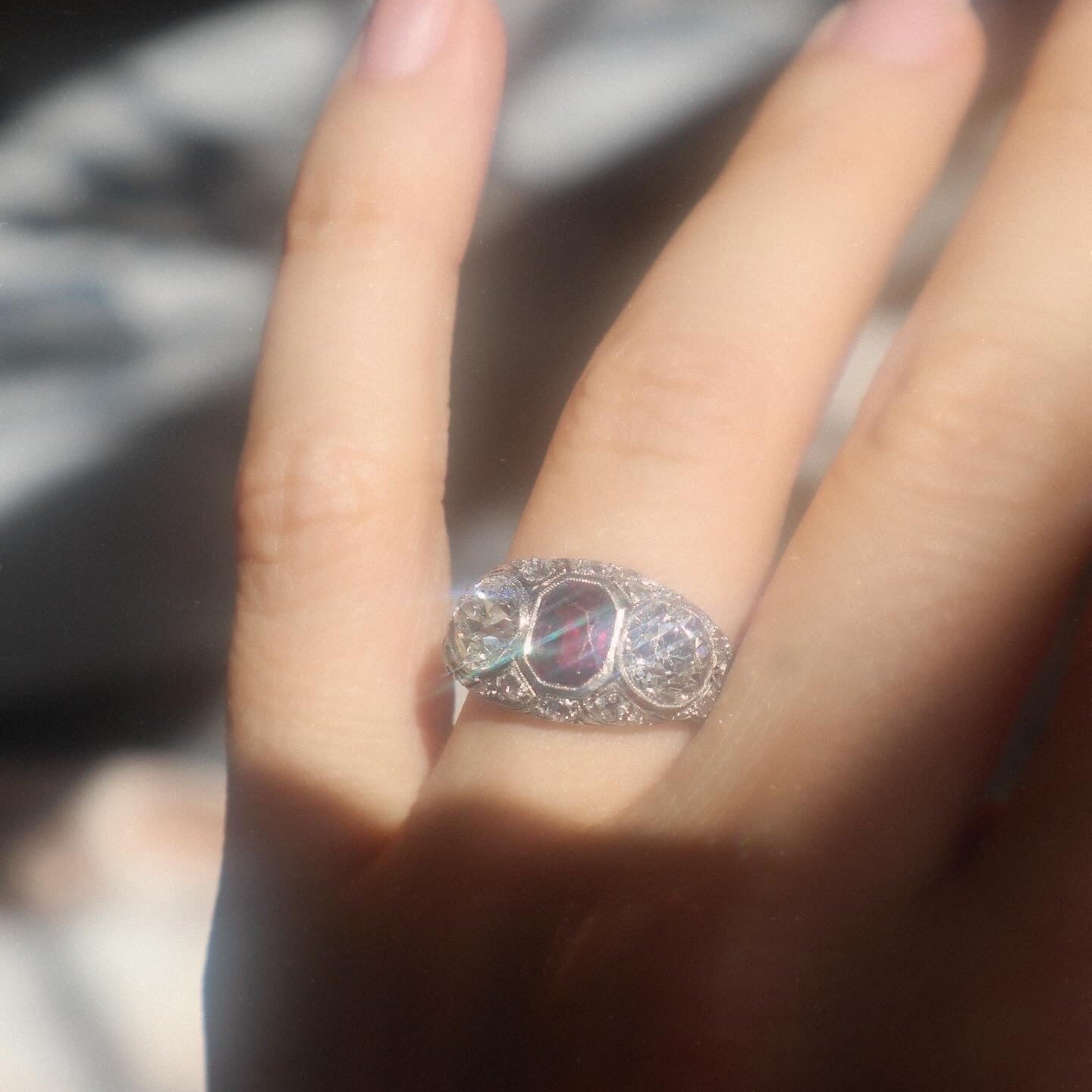The incredible color of a ruby ring is instantly noticeable and never fails to make a stunning impression. A vintage ruby engagement ring is a cherished treasure from the past that you will hold dear as a timeless symbol to celebrate your future together. Find yours today.